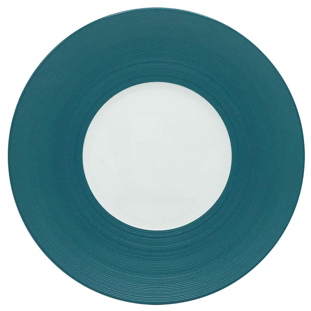 Französisches Porzellan in persischem Blau. Das Tafelservice "Hémisphère Bleu Persan" von J.L Coquet schimmert in einem bezaubernden, tiefen Petrolton. Der warme Farbton ist vom historischen Persisch-Blau inspiriert, einem ikonischen Türkiston aus der Welt der arabischen Keramik. Auf dem feinen Rillenmuster der renommierten "Hémisphère" Porzellanserie entwickelt das intensive Blaugrün eine magische Anziehungskraft, die Speisen unwiderstehlich in Szene setzt.