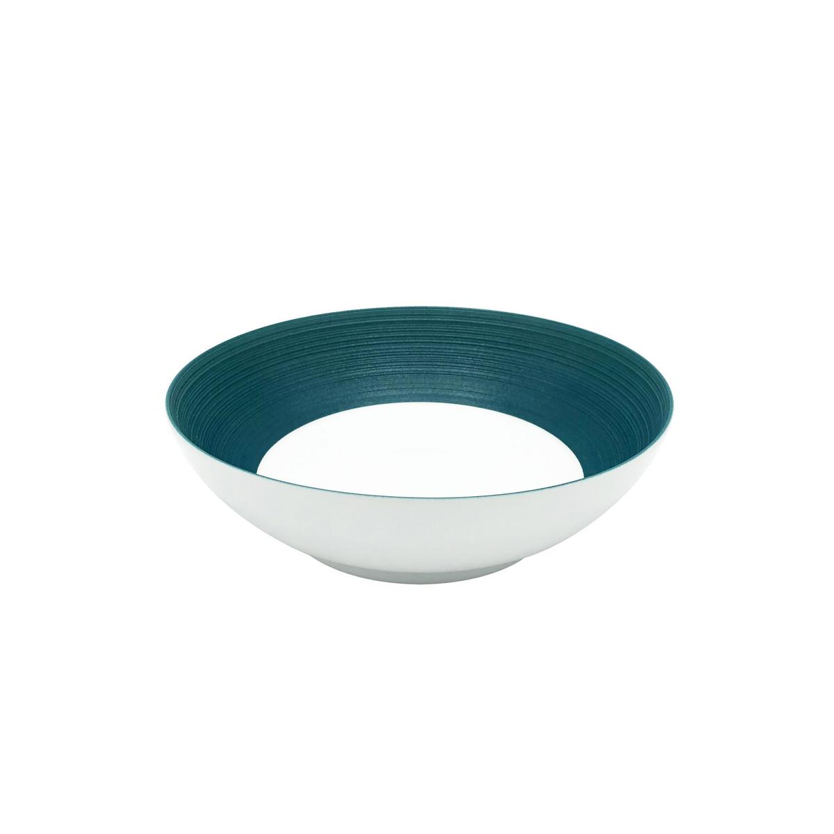 Französisches Porzellan in persischem Blau. Das Tafelservice "Hémisphère Bleu Persan" von J.L Coquet schimmert in einem bezaubernden, tiefen Petrolton. Der warme Farbton ist vom historischen Persisch-Blau inspiriert, einem ikonischen Türkiston aus der Welt der arabischen Keramik. Auf dem feinen Rillenmuster der renommierten "Hémisphère" Porzellanserie entwickelt das intensive Blaugrün eine magische Anziehungskraft, die Speisen unwiderstehlich in Szene setzt.