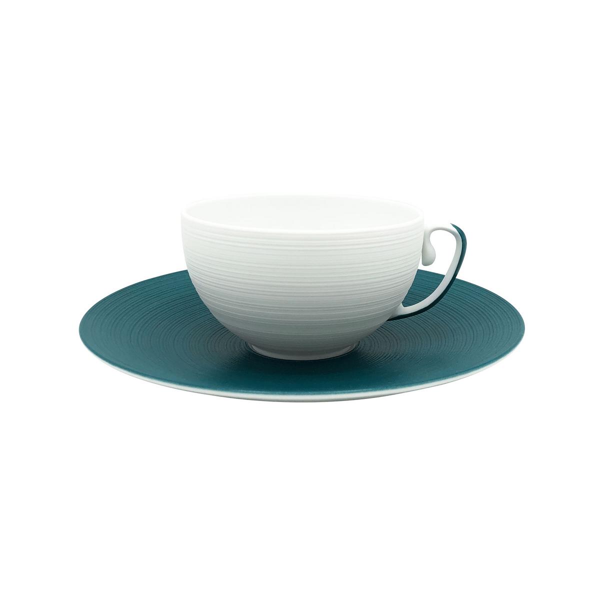 "Hémisphère Bleu Persan" Teetasse, Tasse weiß mit Unterteller "Hémisphère Bleu Persan" von J.L Coquet