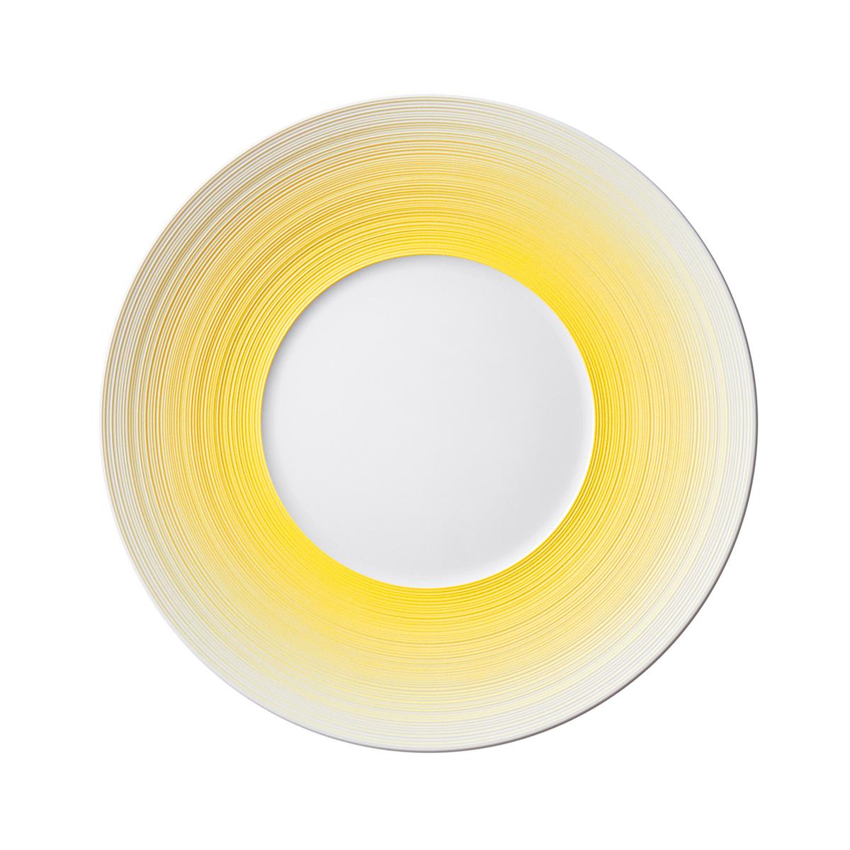 Das Tafelservice "Hémisphère" ist die puristische Limoges-Porzellan-Legende von J.L Coquet. Für die Farbvariante "Jaune Mimosa" trägt die Porzellanmanufaktur einen weichen Farbverlauf auf das feine Rillendekor der Serviceteile auf. Zu den Rändern der Verläufe hin schillern immer mehr der weißen Hügel und Täler des Dekors hindurch, die das reine Gelb wie warme Sonnenstrahlen zum Leuchten bringen. Die lebendige Farbe erhebt "Jaune Mimosa" zur perfekten Bühne für leichte, frische und sommerlich-mediterrane Speisen.