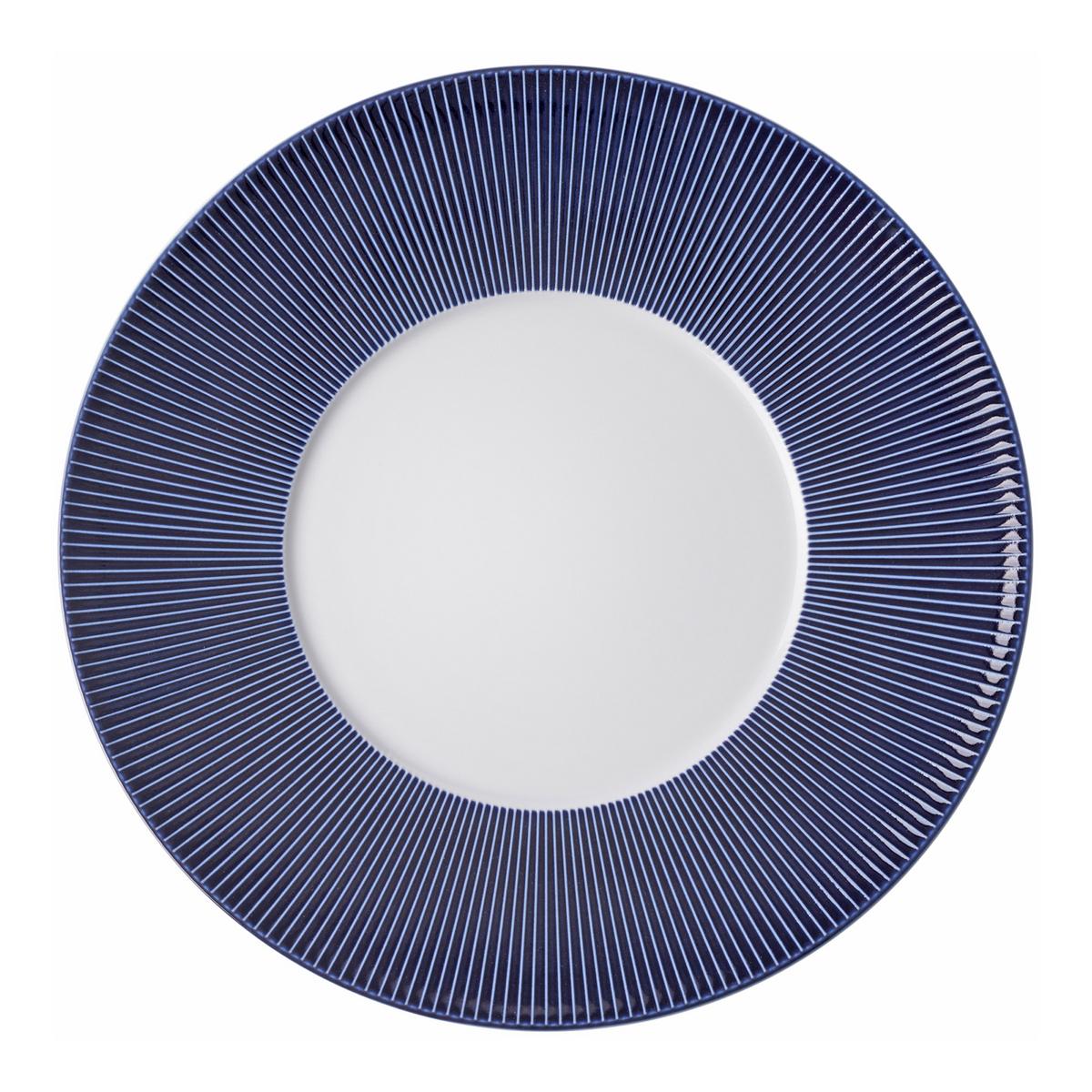 Blaues Porzellan mit Strahlkraft. Für das Tafelservice "Bolero Blue" veredelt Jaune de Chrome das strahlend weiße Limoges-Porzellan der Schwestermanufaktur J.L Coquet mit einer mitternachtsblauen Glasur. Das Merkmal der Bolero-Form sind feine Rillen, die strahlenförmig vom Rand in die Mitte zulaufen. Die speziell entwickelte Glasur von Jaune de Chrome sammelt sich zwischen den Rillen und kreiert ein elegantes Spiel aus Weiß und Blau, hell und dunkel, zart und intensiv. Formen ohne Strahlendekor leuchten in einem so tiefen Blau, dass man sich in ihnen verliert – meisterliche Glasur-Alchemie von Jaune de Chrome.