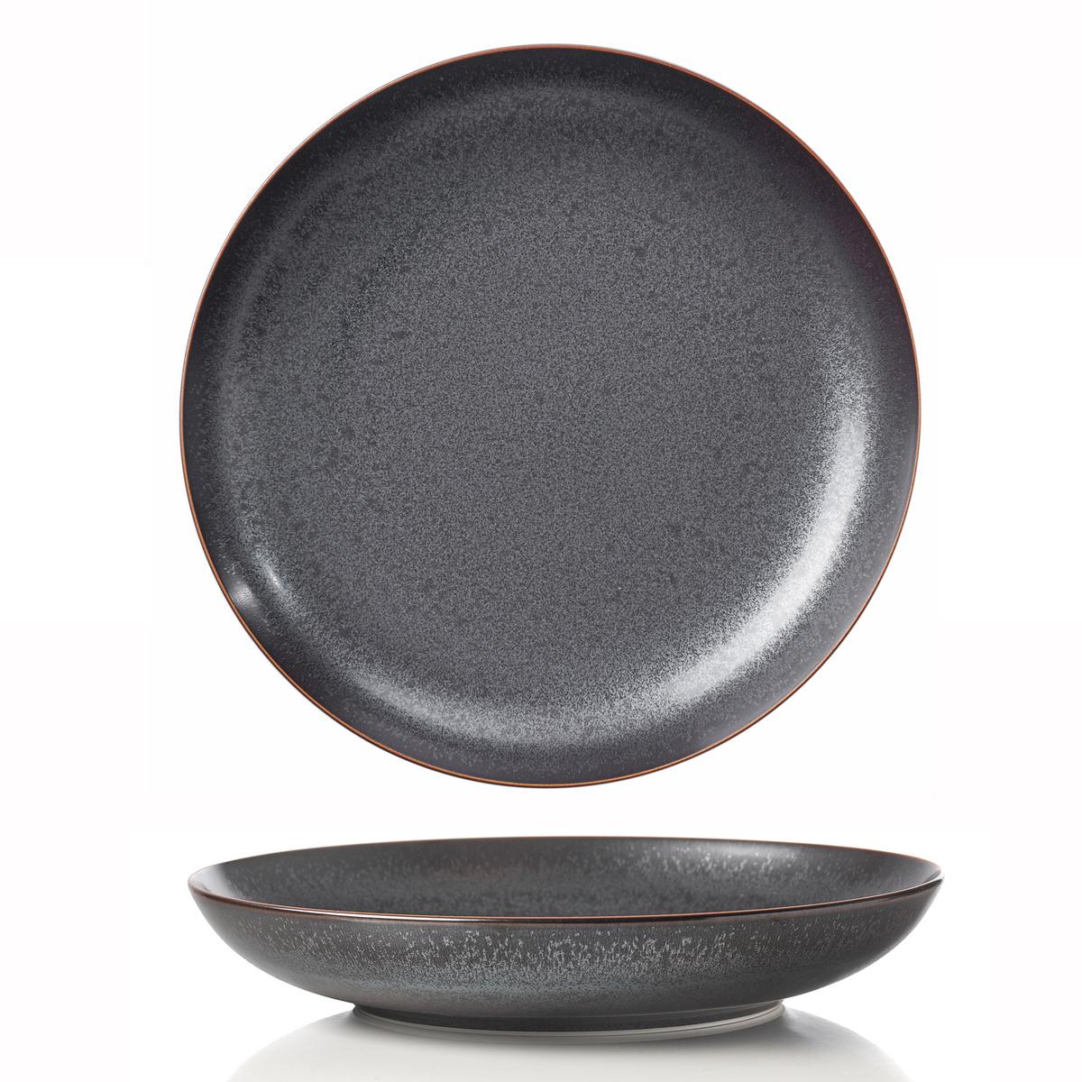 Geheimnisvolle Eleganz für die internationale Tischkultur. Das Tafelservice "Bora Bora" von Jaune de Chrome ist von der schwarzen Tahitiperle inspiriert. Mit einem Spektrum zwischen Anthrazit und Schwarz erinnern Farben und Muster der innovativen Effektglasur an noble, mit einem perlenartigen Glanz überzogene Steinoberflächen.