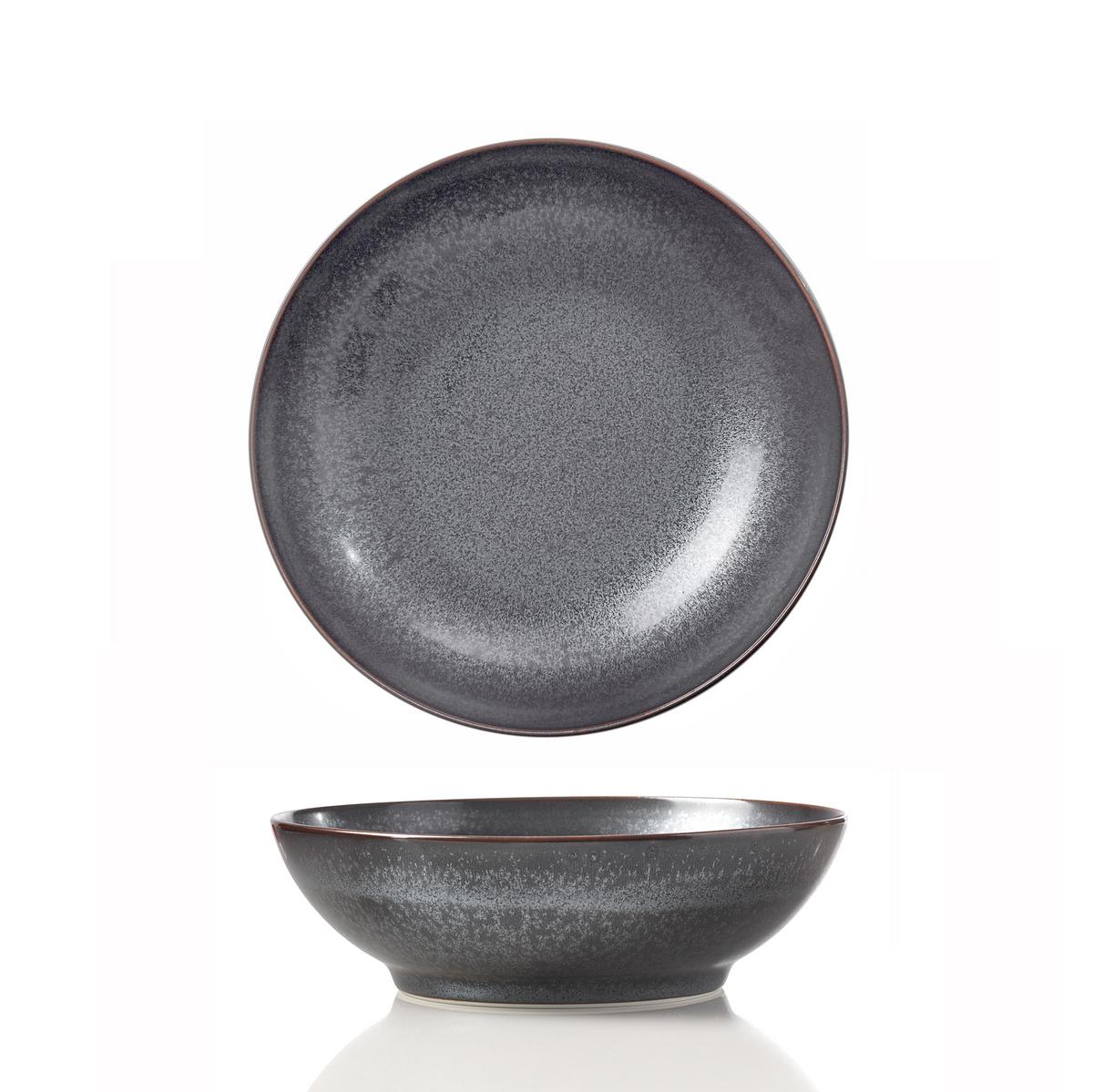 Geheimnisvolle Eleganz für die internationale Tischkultur. Das Tafelservice "Bora Bora" von Jaune de Chrome ist von der schwarzen Tahitiperle inspiriert. Mit einem Spektrum zwischen Anthrazit und Schwarz erinnern Farben und Muster der innovativen Effektglasur an noble, mit einem perlenartigen Glanz überzogene Steinoberflächen.