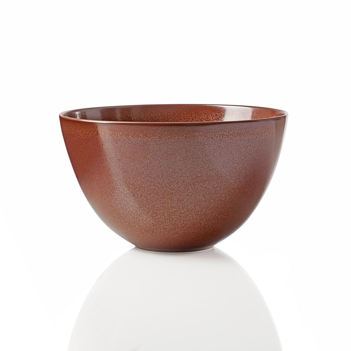 Kraftvoll wie Granit, zart wie Porzellan. Für das Tafelservice "Granite Rouge" überzieht Jaune de Chrome das feine Limoges-Porzellan der Schwestermanufaktur J.L Coquet mit einer hochglänzenden Effektglasur in der Farbe roten Granits. Je nach Lichteinfall schimmert das Porzellan mal tief dunkelbraun, mal intensiv rostrot. Die schillernden Farben und Texturen sind ein fester Bestandteil der Glasur und dadurch äußerst glänzend, glatt und kratzfest. Das macht die edlen Oberflächen genauso beeindruckend wie pflegeleicht.