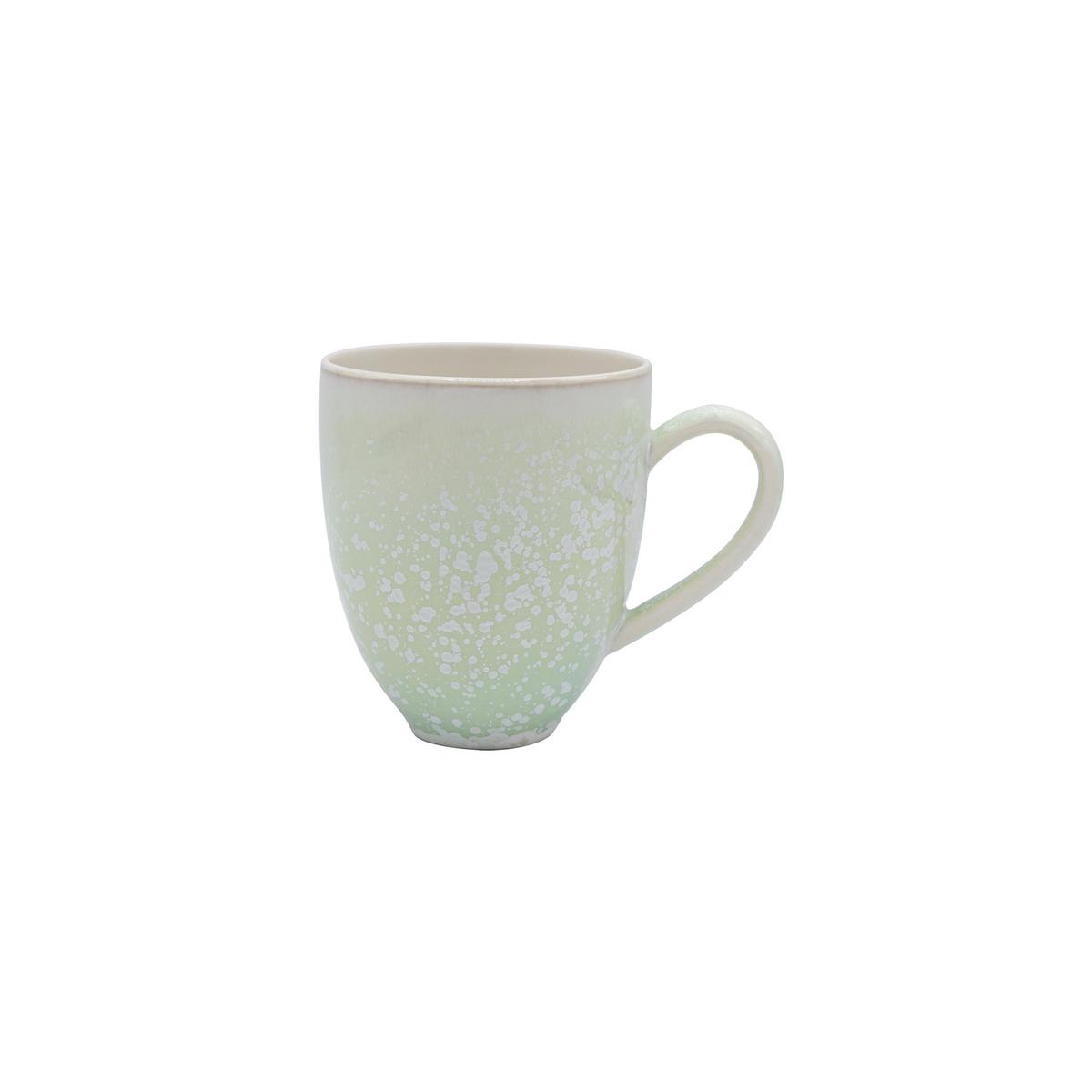 Zurückerobert von der Natur. Das Tafelservice "Song Amande" von Jaune de Chrome schimmert in einem sanften Grünton. Ein heller Fleckenteppich erstreckt sich wie ein edle Patina über das zart gefärbte Limoges-Porzellan. Zusammen mit einem dezenten, weichen Farbverlauf scheint es, als wäre das Geschirr wie Steine im Garten nach Jahren in der warmen Sonne langsam verblasst und von feinem Moos überwachsen.