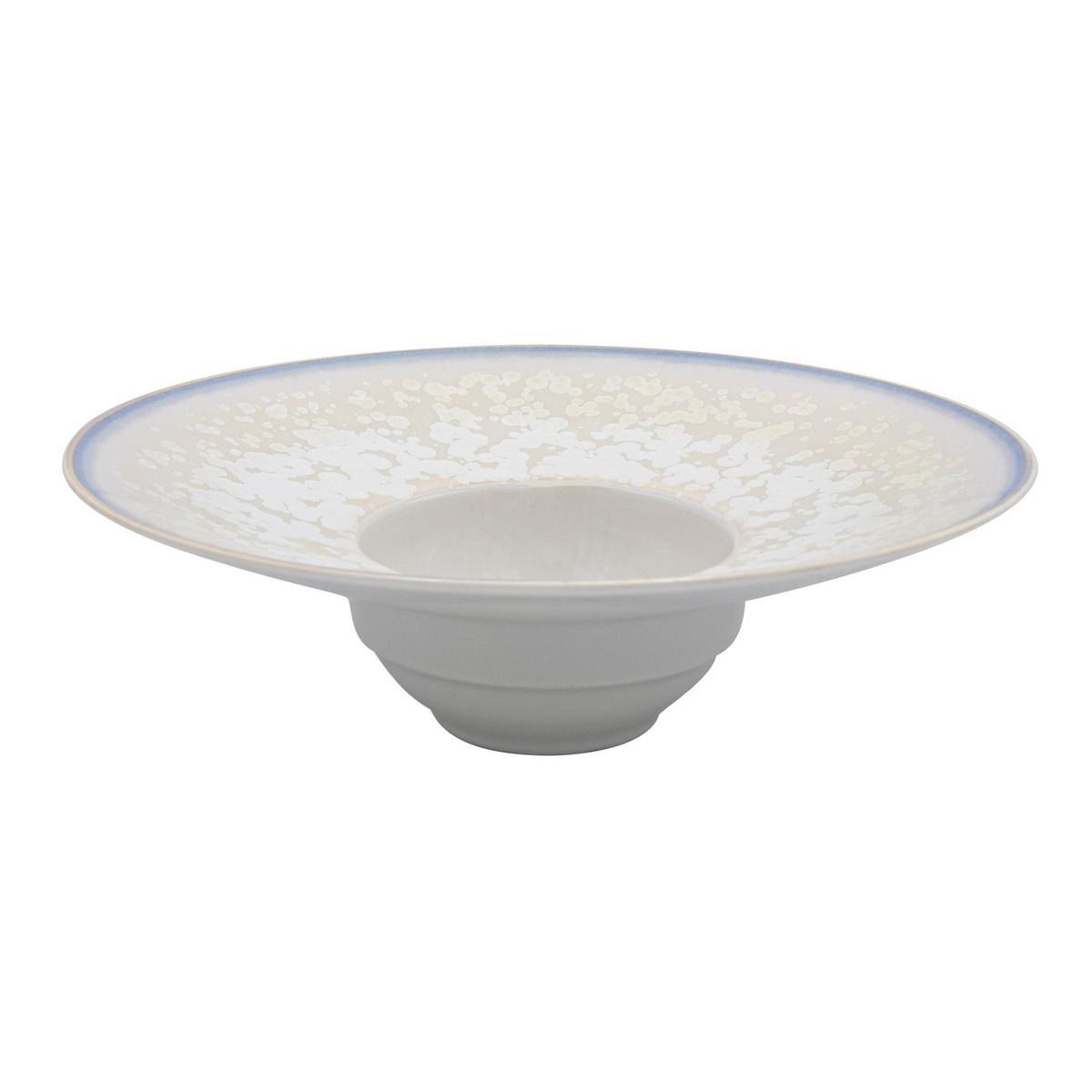 Organisch, sanft und elegant. Das Tafelservice "Song Perle" von Jaune de Chrome verzaubert mit einem innovativen Dekor, das an Perlen und verwitterte Muschelschalen erinnert. Das pure Limoges-Porzellan ist bläulich bis cremefarben und mit perlmuttartigen Flecken besprenkelt. Die Oberfläche scheint wie uralte Felsen an einem rauen Küstenufer über Jahre hinweg eine edle Patina angenommen zu haben.