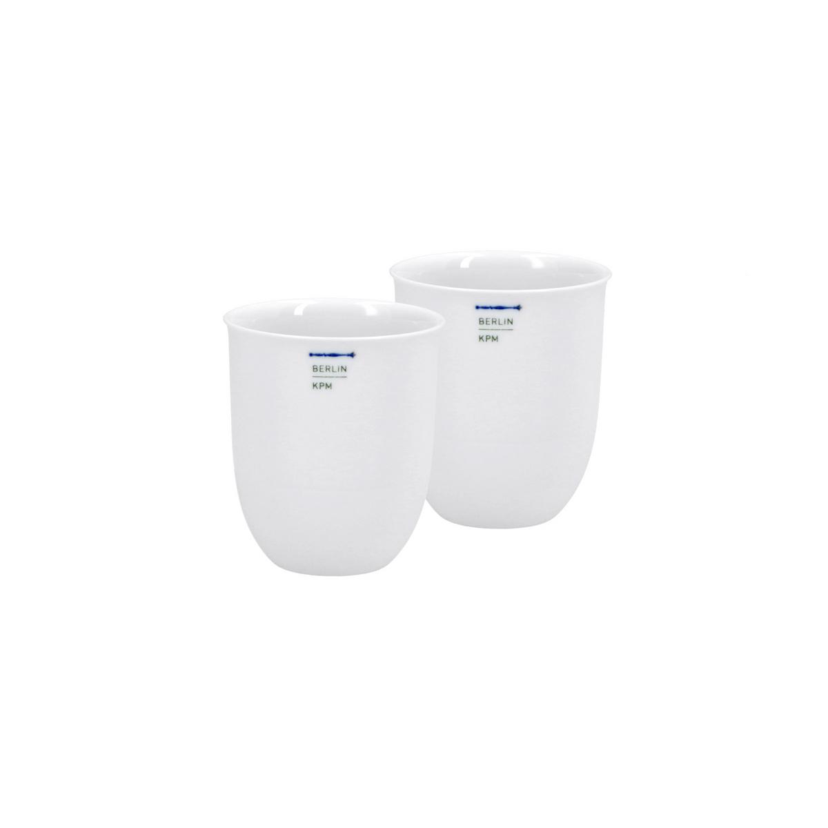 • Bei den Bechern macht der Mix aus glänzend-glattem Glasurporzellan in der oberen Hälfte und mattem Biskuitporzellan in der unteren Hälfte die Becher zu echten Handschmeichlern.