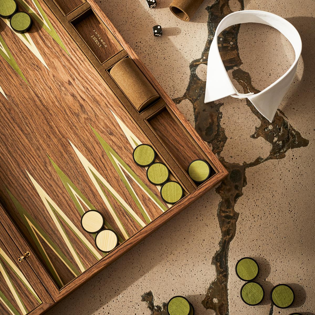 Mit seiner aufwendigen Intarsienarbeit (Marqueterie) und den sorgfältig gearbeiteten Details ist dieses Backgammon weit mehr als nur ein Spiel – es ist ein Meisterstück für Sammler und Designliebhaber.