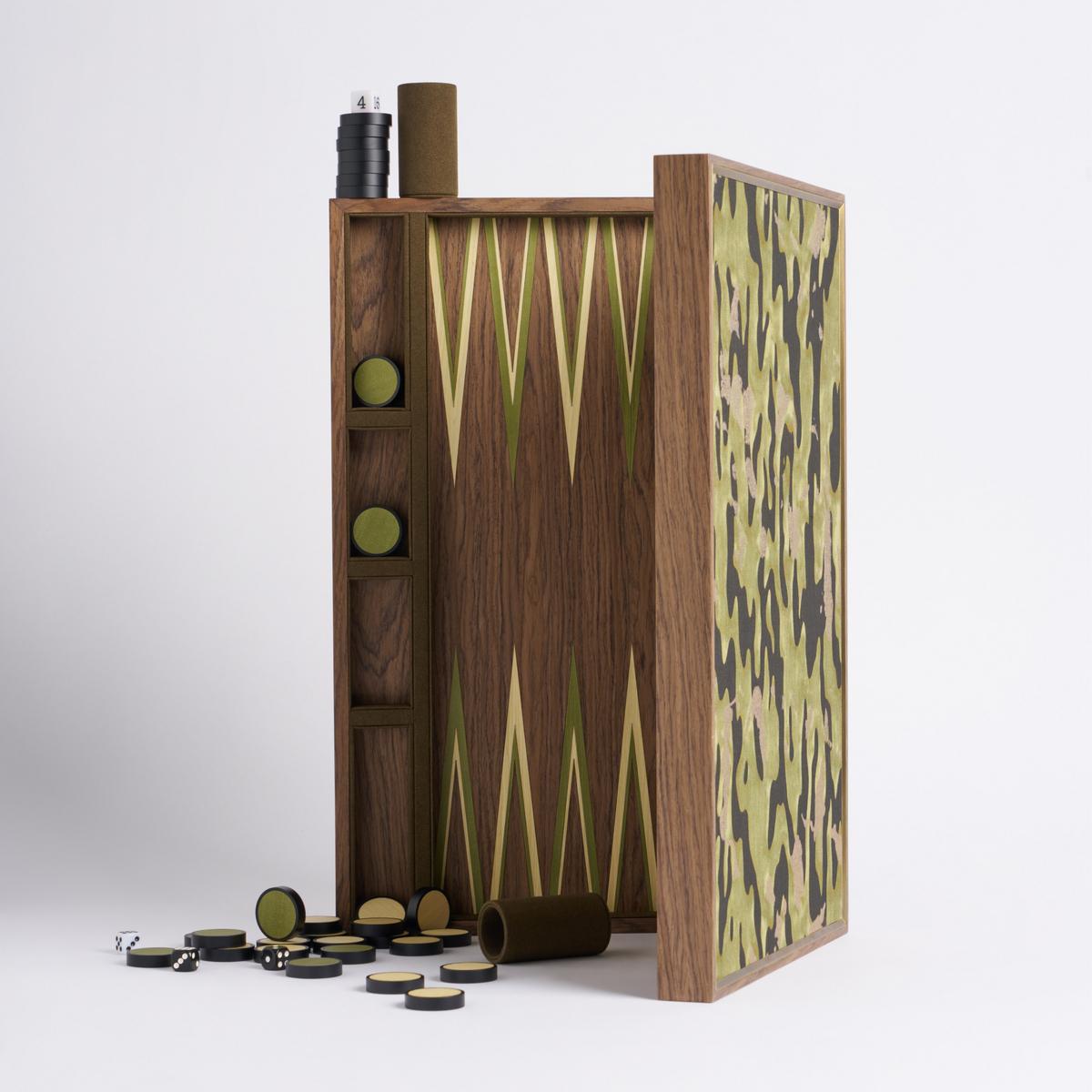 Das Backgammon "Fortuny" von L’Objet verbindet traditionelle Handwerkskunst mit modernem Design. Gefertigt aus edlem Holz und dem ikonischen Fortuny-Stoff in Camouflage-Optik und Military-Grün, vereint dieses Spiel Luxus und spielerische Raffinesse auf eindrucksvolle Weise.