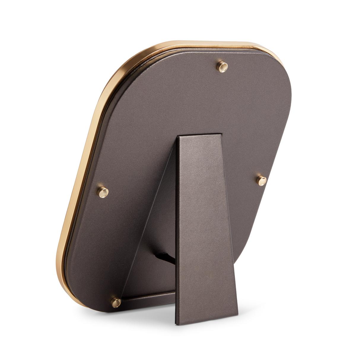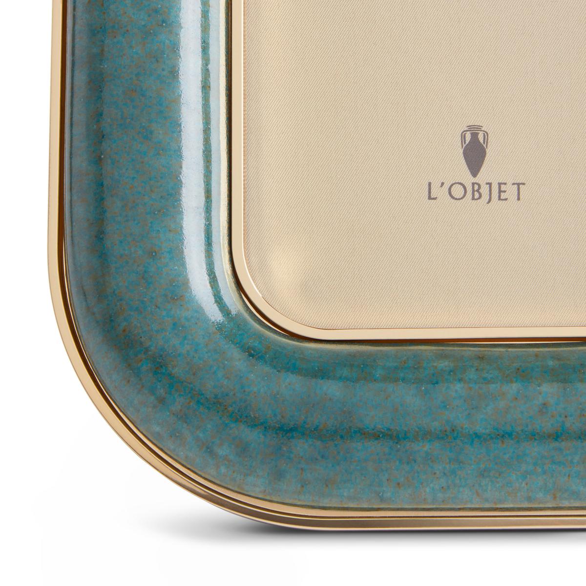 Der Rahmen besteht aus Keramik mit reaktiver Glasur, die jedem Stück eine individuelle, lebendige Struktur verleiht. Ein feiner 24-Karat-Vergoldungsrand setzt glänzende Akzente und rahmt das Bild kunstvoll ein. Auf der Rückseite sorgt edles Leder für einen stilvollen Abschluss und macht die Rahmen auch von hinten zu einem Blickfang.