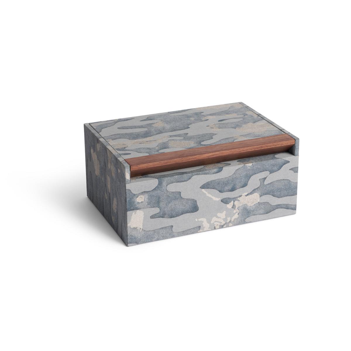 Die Boxen "Fortuny" von L’Objet sind mehr als nur Aufbewahrung – sie sind wahre Kunstobjekte. Jede Box ist mit dem ikonischen Stoff "Camo Isole" von Fortuny bezogen, dessen Muster und Farben an die künstlerische Tradition des venezianischen Designers Mariano Fortuny erinnern. Die aus Walnussholz gefertigte Konstruktion und das luxuriöse Innenfutter aus Wildleder verleihen den Boxen eine unvergleichliche Eleganz.