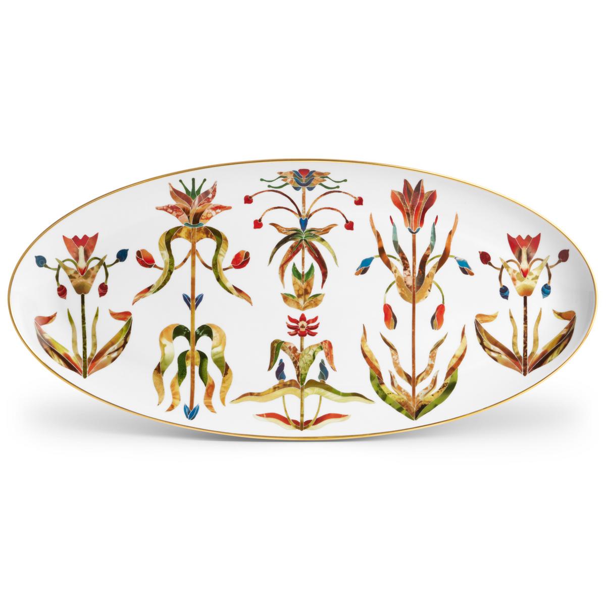 Gefertigt aus feinstem Porzellan, überzeugt "Grand Tour" von L‘Objet durch ein besonders aufwendig gestaltetes, mehrlagiges Dekor. Durch eine spezielle Verarbeitung entsteht eine beeindruckende visuelle Tiefe, die an aufwendige Intarsien-Arbeiten mit Edelsteinen erinnert. Die detailreichen botanischen Motive wirken wie eingelegte Steine und verleihen jedem Stück eine außergewöhnliche Präsenz.