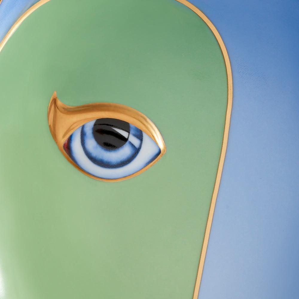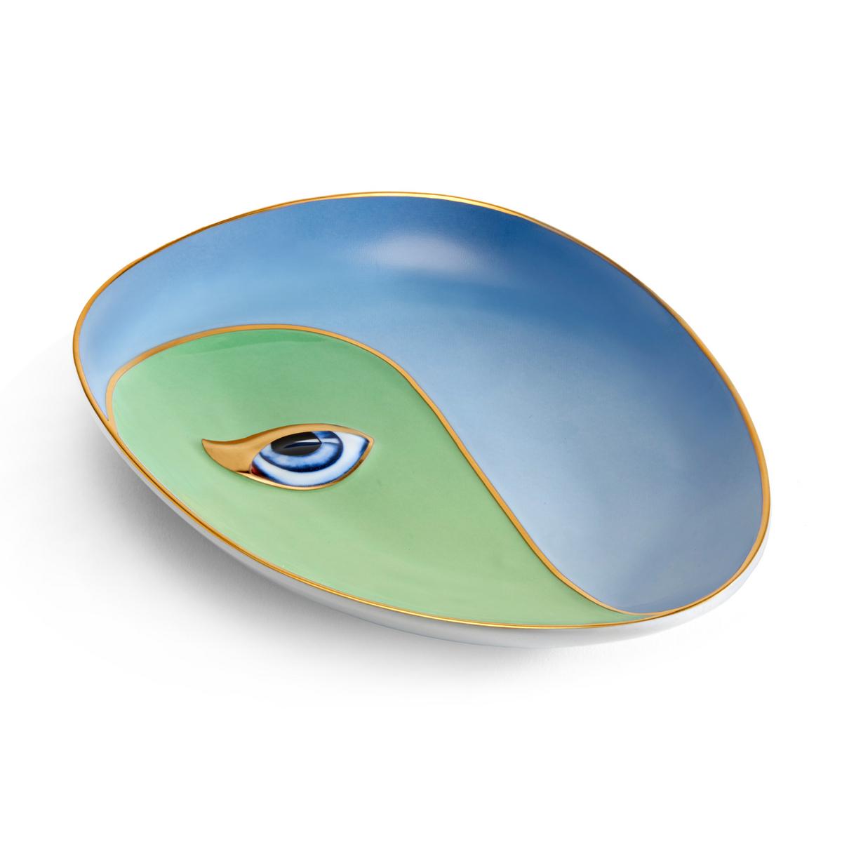 Das Auge ist ein uralter Talisman des Glücks und des Schutzes – und ein Bindeglied zwischen zwei schöpferischen Seelen. Dieses faszinierende Sinnesorgan steht im Mittelpunkt der Linie "Lito" von L'Objet und ziert auch die Vide-Poches. Auf feinstem Porzellan ist ein faszinierendes Augen-Design angebracht, das wunderbar durch den farbenkräftigen Hintergrund und den 24-karätigen Goldrand betont wird. Das Auge tritt reliefartig hervor und wirkt dadurch sehr realistisch, so dass man den Blick kaum davon wenden kann.