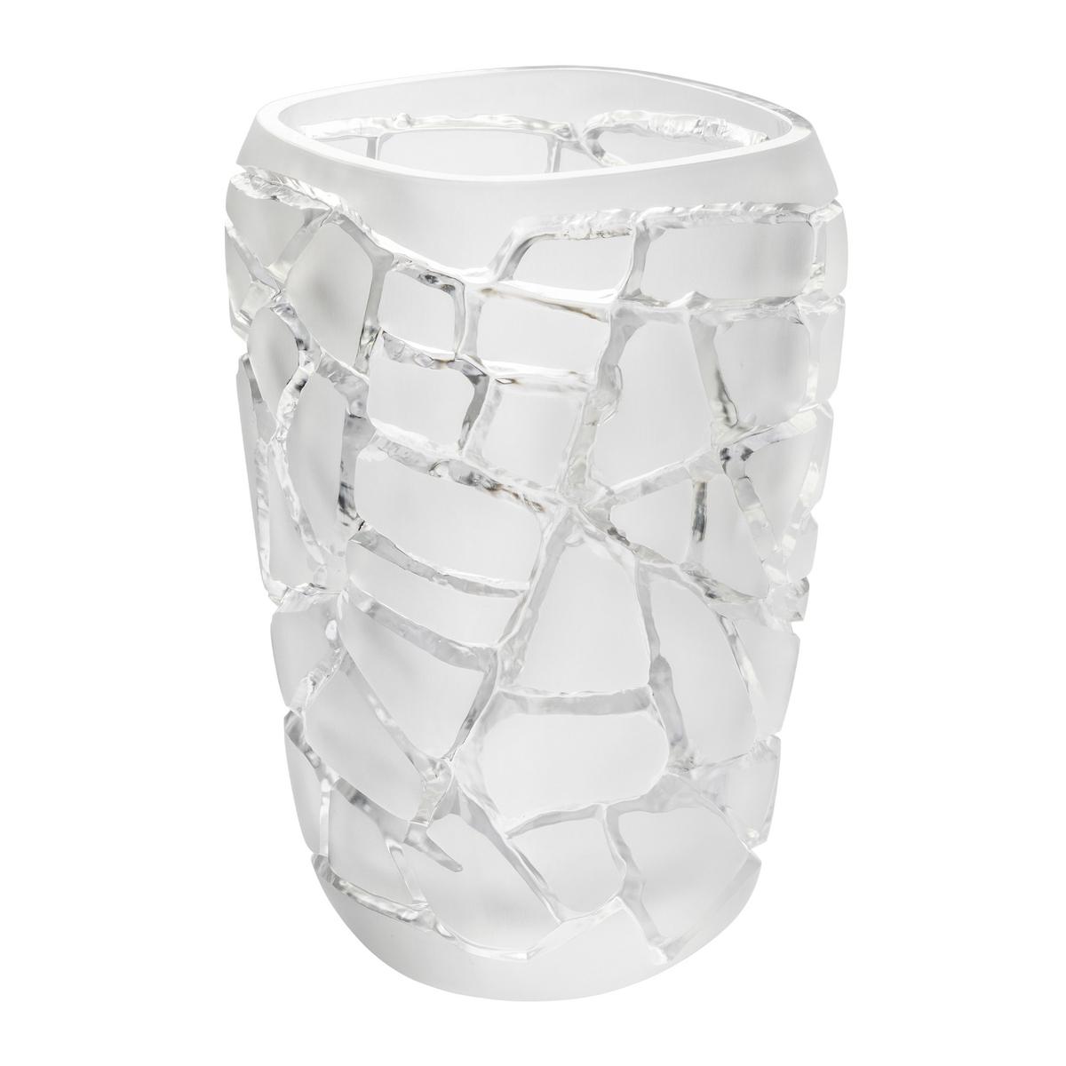 Eine kolossale Kraft im Angesicht schwebender Eleganz. Die große Vase "Magnitude" in Klar von Lalique ist von der Bewegung der tektonischen Platten inspiriert. In natürlicher Geometrie durchbricht ein elegantes Mosaik aus klaren Rissen die satinierten Oberflächen der geradlinigen Kristallvase. Durch das Spiel aus matt und klar entsteht eine faszinierende Tiefenwirkung, welche die Dicke des edlen Kristallglases betont und einzigartige Lichtspiele ermöglicht.