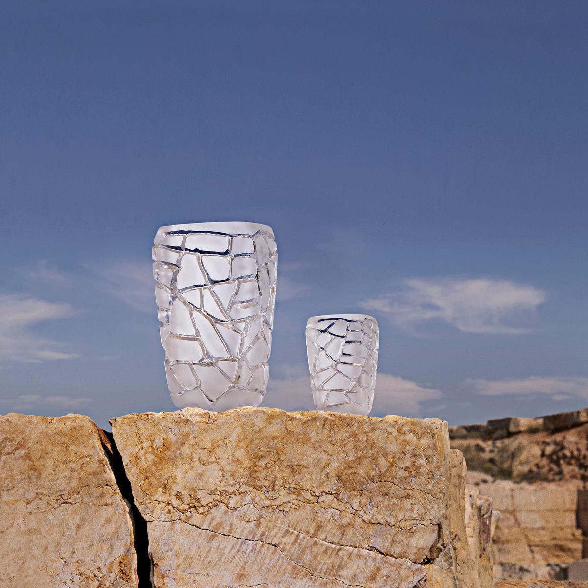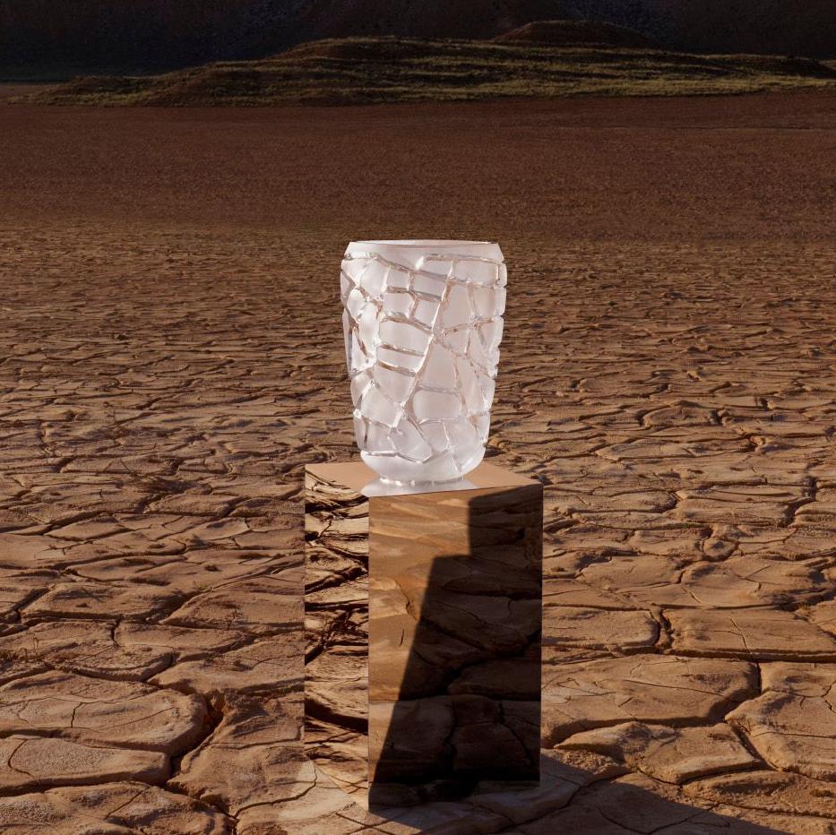 Die Vase "Magnitude" ist Teil der Kollektion "Terramineral", einer Hommage an die Kräfte der Natur und die vier Elemente. Die Kombination aus natürlichen Oberflächenstrukturen und makellosem Kristall schafft ein poetisches Gleichgewicht der Gegensätze: kraftvoll und zerbrechlich, roh und elegant, eine ewige Bewegung erstarrt zu Kristall. Authentisch und zeitlos, ist die Kollektion eine Ode an die Eleganz der Natur, in der das ganze Können von Lalique zum Ausdruck kommt.