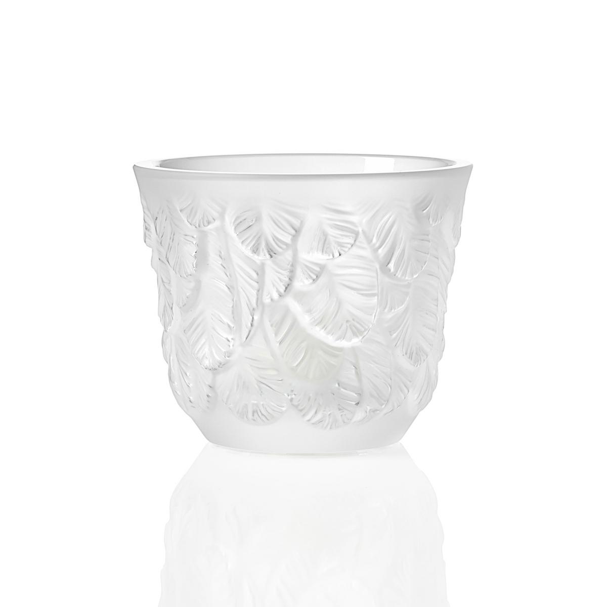 Auf den Spuren des Königreichs der Tiere. Die Windlichter "Grand-Duc" von Lalique tragen das prächtige Federkleid des Virginia-Uhus, dem Tiger der Lüfte. Das aufwendige Federmuster erhält erst eine satinierte Oberfläche. Danach wird es von Hand neu poliert, um die unzähligen Details des dichten Federkleids herauszuarbeiten. Genießen Sie, wie sanftes Kerzenlicht warm und weich durch das edle Kristallglas schimmert – eine majestätische Dekoration für schönste Tischlandschaften.
