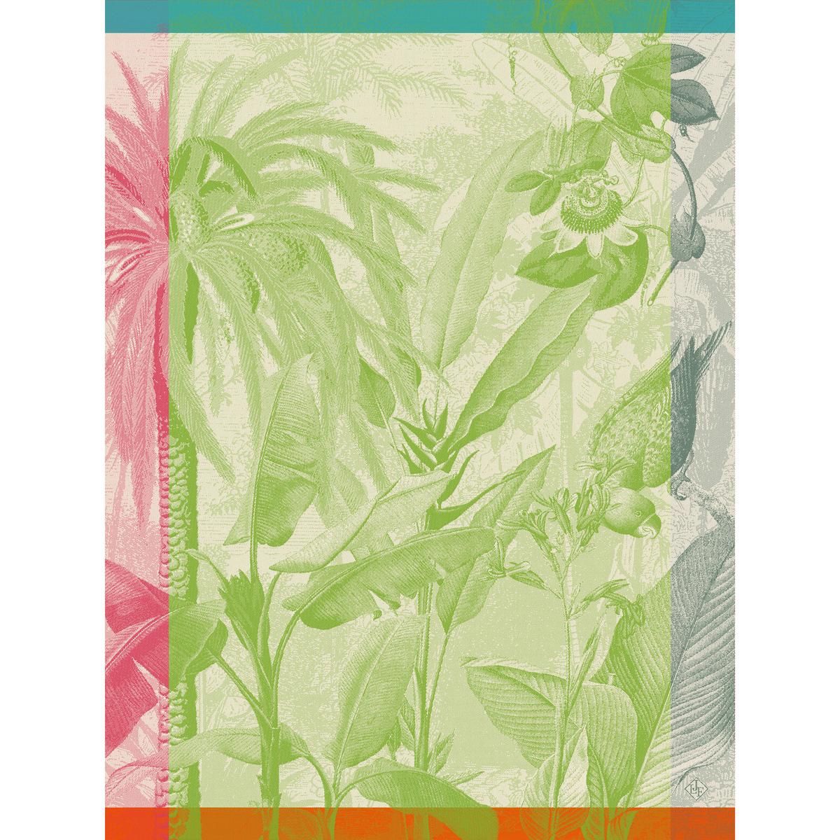 Die Geschirrtücher "Equateur" von Le Jacquard Francais laden Sie ein, in den Regenwald einzutauchen und eine unvergessliche exotische Reise inmitten einer farbenprächtigen Panoramalandschaft zu unternehmen.