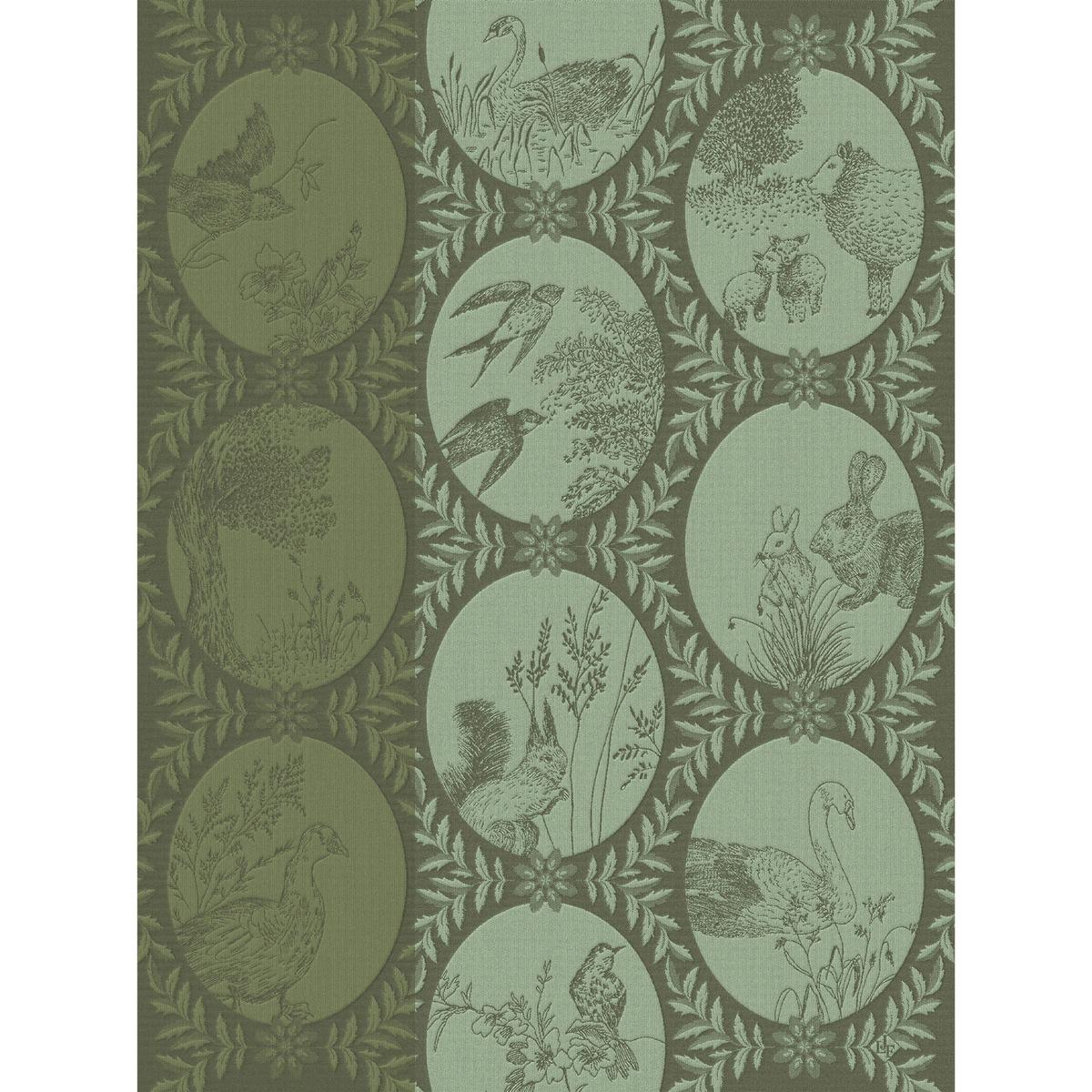 Die Geschirr- und Küchenhandtücher "Josephine" von Le Jacquard Français sind ein charmanter Blickfang in Ihrer Küche. Schwäne, Hasen und Schwalben erscheinen in romantischen Medaillons und schmücken ein neu interpretiertes Toile de Jouy.