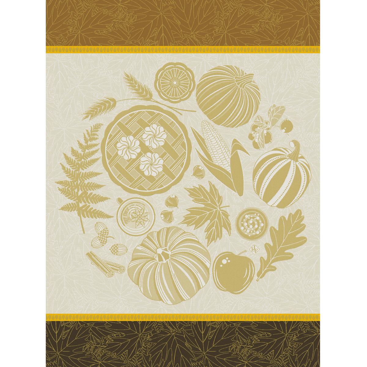 Genießen Sie ein Stück Kürbiskuchen! Die Geschirrtücher "Thanksgiving" von Le Jacquard Francais feiern die Schätze des Herbstes. Weit entfernt von seinen ursprünglichen Symbolen ist Thanksgiving heute eine weltliche und familiäre Feier.