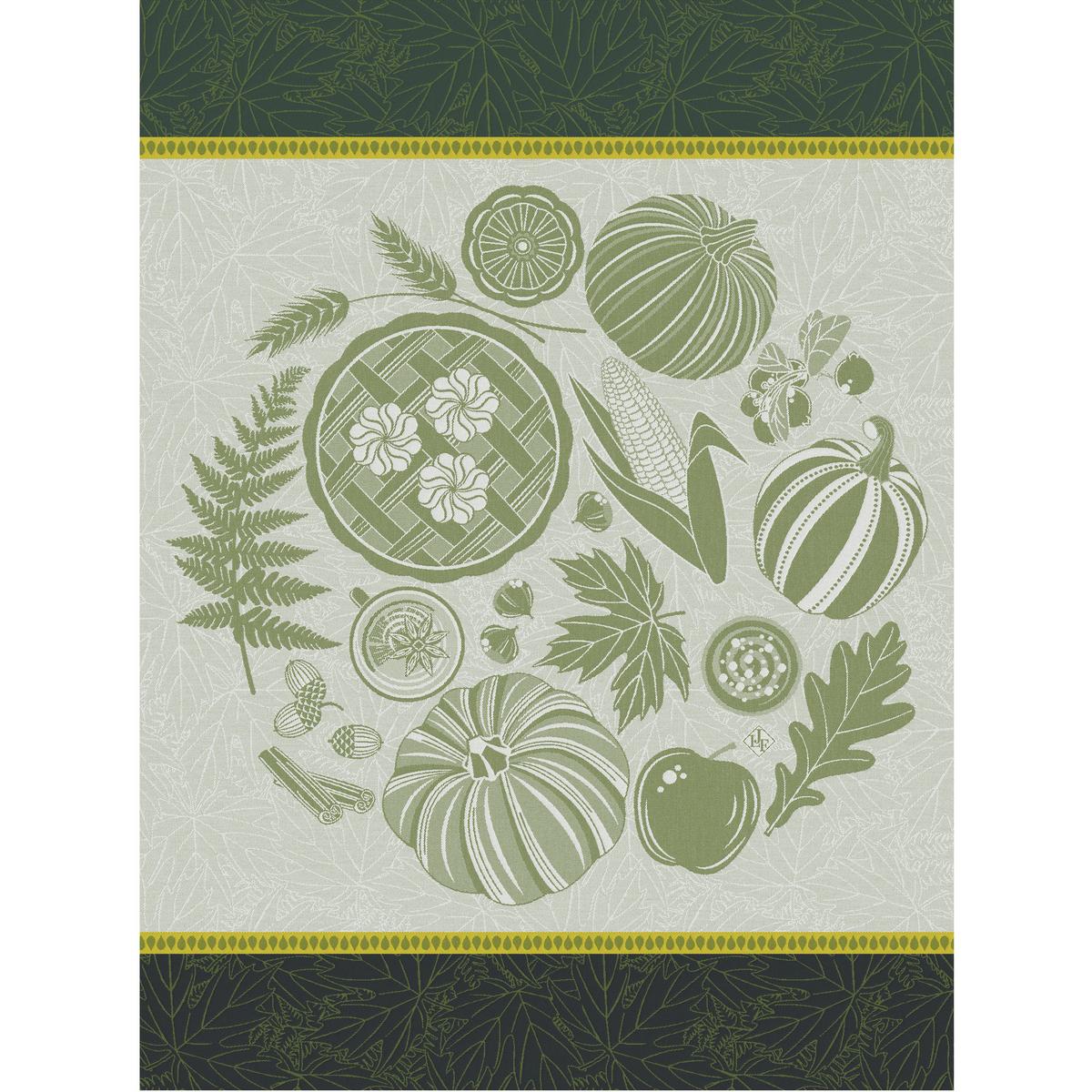 Genießen Sie ein Stück Kürbiskuchen! Die Geschirrtücher "Thanksgiving" von Le Jacquard Francais feiern die Schätze des Herbstes. Weit entfernt von seinen ursprünglichen Symbolen ist Thanksgiving heute eine weltliche und familiäre Feier.