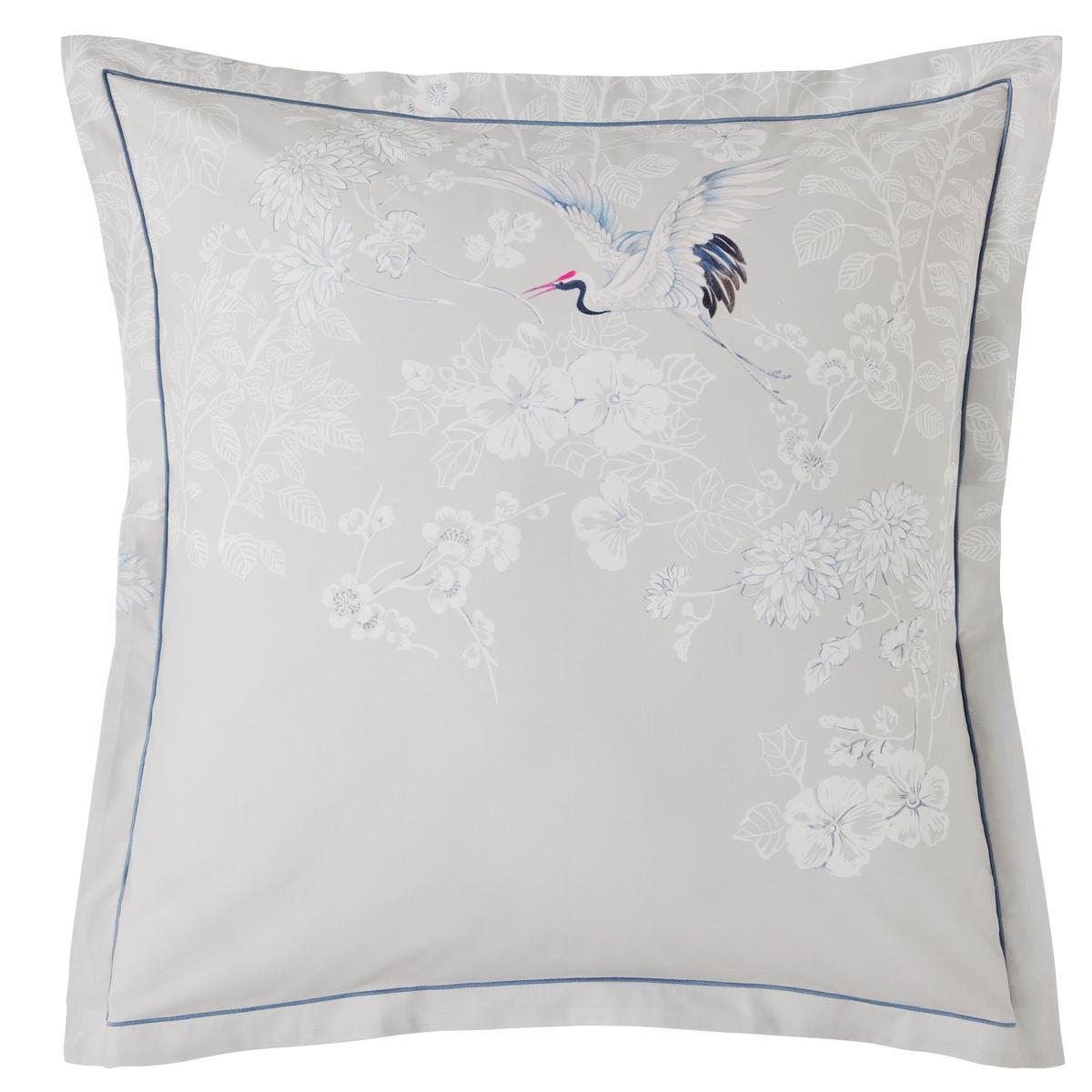 "Envol" wird aus bedruckter Perkalbaumwolle produziert, die Vorder- und Rückseite der Kissen- und Bettbezüge sind unterschiedlich bedruckt. Die Kissenbezüge werden zusätzlich von einer feinen graublauen Hummel hervorgehoben und bieten hiermit einen einzigartigen Bildausschnitt und eine Oase der Ruhe mit raffiniertem Stil.