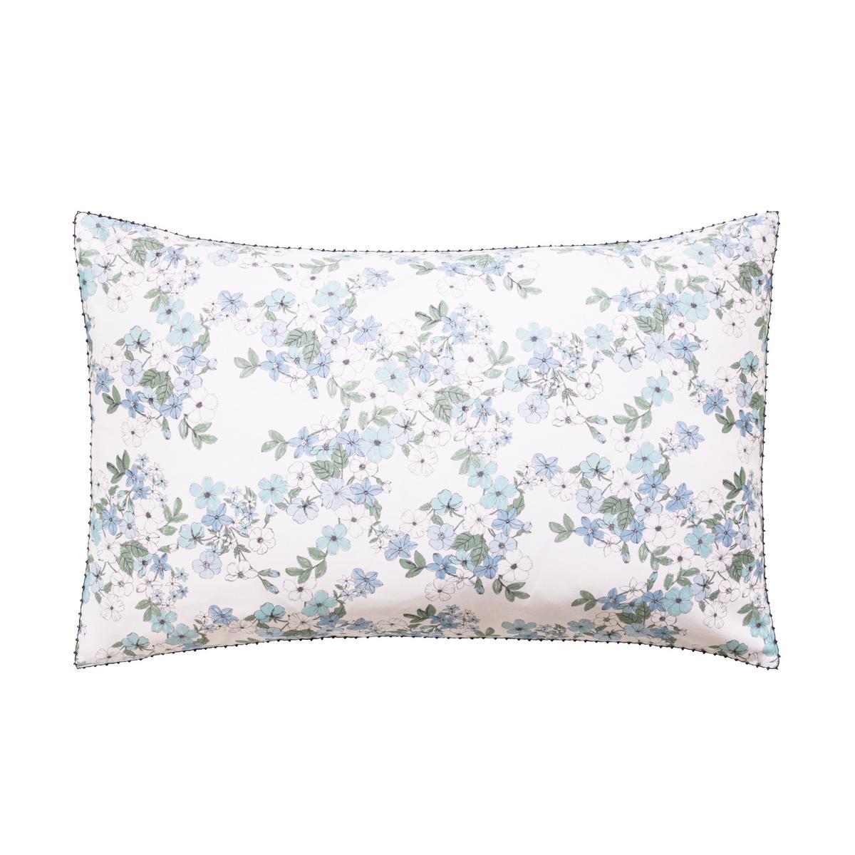 Die Bettwäsche "Manuka" von Le Jacquard Francais ist mit Manuka-Blüten und japanischen Quittenbäumen geschmückt. Nuancen von Seladon, Wassergrün und Himmelblau, die durch einen feinen, zarten Strich hervorgehoben werden, sorgen für natürliche Eleganz. Die Vorderseite der Kissen- und Bettbezüge aus weißem Baumwollsatin zeigt ein sorgfältig komponiertes Motiv, während die einfarbige Rückseite in zartem Seladonblau für eine ruhige Balance sorgt.