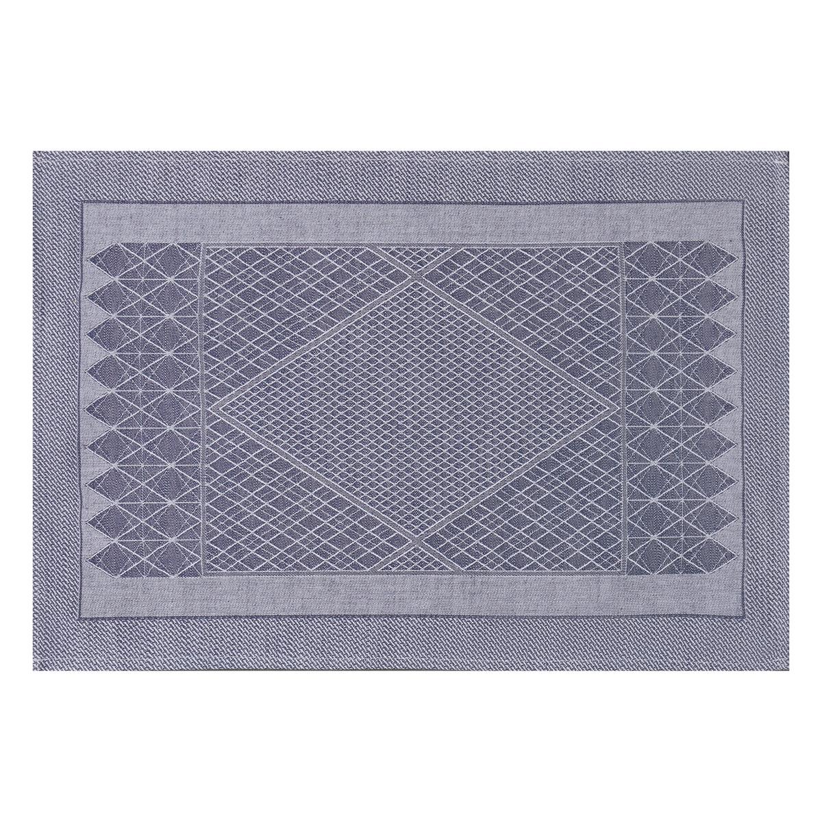Architekturale Linien für den gedeckten Tisch. Die Tischwäsche "Club" im hellblauen Farbton "Denim" ist eine Zusammenarbeit von Le Jacquard Français und dem Designstudio des Architekten, Urbanisten und Designers Jean-Michel Wilmotte. Jedes Stück der Kollektion präsentiert ein neues detailreiches Rautenmuster auf einem neutralen, hellen Blau. Von Mikro bis Makro zeichnen die Rauten komplexe geometrische Muster und Gitternetze, die an die imposanten Linien der Architektur von Wilmotte erinnern. Die hellblaue Tischwäsche harmoniert mit Holz genauso wie mit Stein, Marmor und Glas für ultramoderne Raumkonzepte.