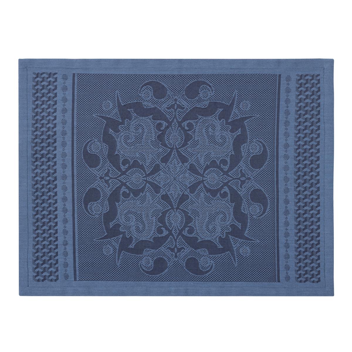 Die Tischwäsche "Palais Venitien" in blau von Le Jacquard Francais ist von den Marmorböden der ikonischen Paläste Venedigs inspiriert. Die barocken Arabesken und geometrischen Muster erinnern auf raffinierte Weise an die italienische Kultiviertheit.