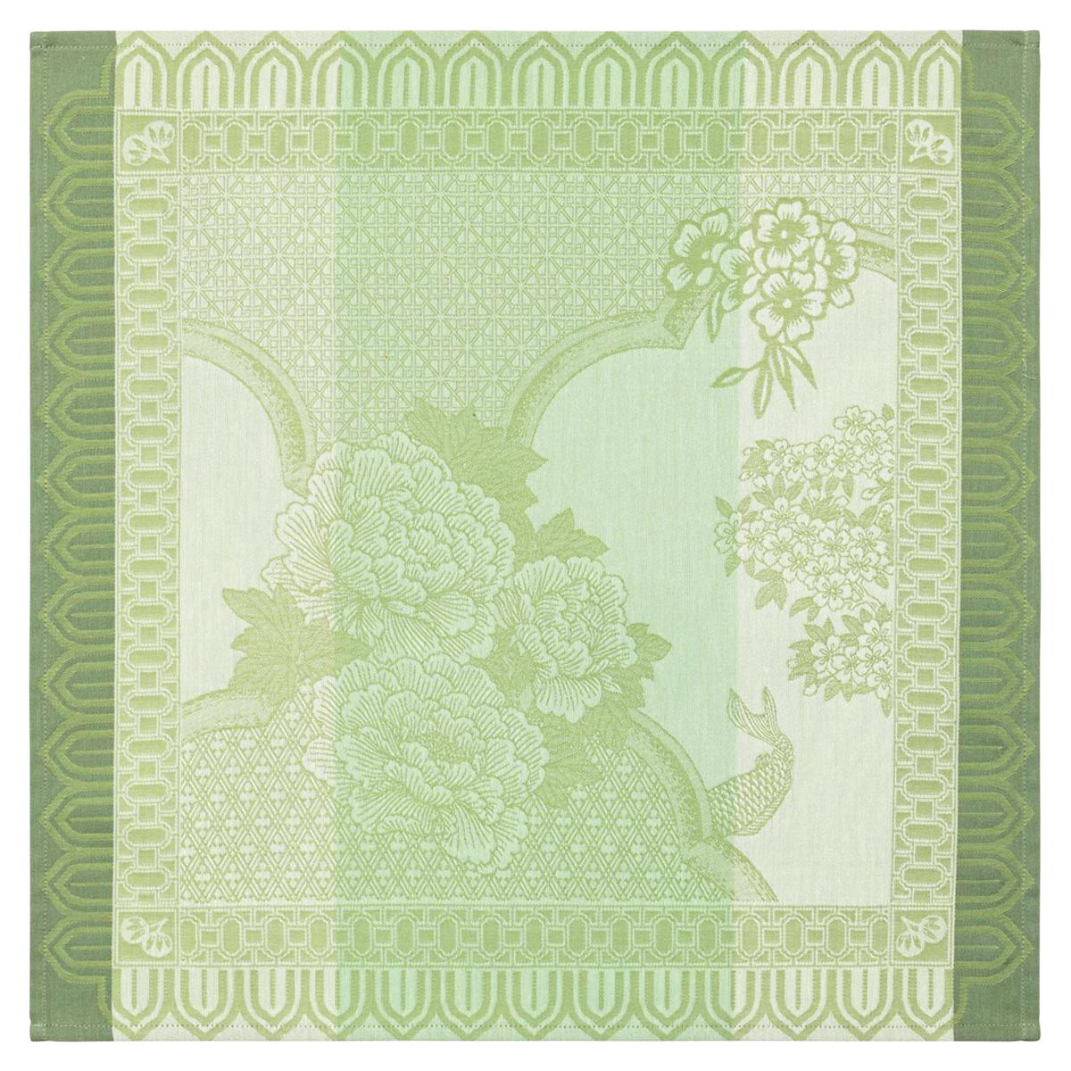 In der Farbvariante Grün wirkt das Design besonders frisch und naturverbunden. Sanfte Grüntöne unterstreichen die floralen Motive und verleihen der Tischwäsche eine ausgewogene, lebendige Ausstrahlung, die an einen Garten in stiller Bewegung erinnert. Neu interpretierte asiatische Geometrien verbinden sich mit skulpturaler Ornamentik zu einem poetischen und harmonischen Gesamtbild.