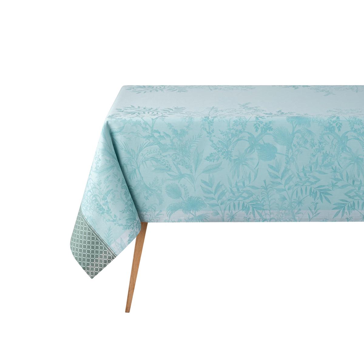 Frisches Türkis, inspiriert von einem paradiesischen Garten: Die Tischwäsche "Jardin d'Eden" von Le Jacquard Français bringt sommerliche Leichtigkeit und verzaubert mit filigranen Motiven von Efeu, Kapillaren und Korbmaranten. Feinste Baumwolle und sommerliche Farben bringen die Harmonie eines üppigen Gartens direkt in Ihr Zuhause.