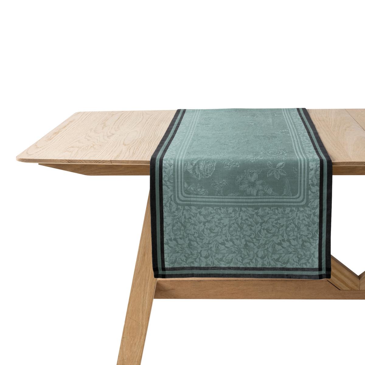 Mit der Tischwäsche "Romance" in Grün von Le Jacquard Français verwandeln Sie Ihren Esstisch in eine Bühne für stilvolle Begegnungen. Fein gewebte Blütenmotive – von nostalgischen Rosen bis hin zu zarten Gartenblumen und elegantem Laub – verleihen dem Leinenstoff eine romantische, fast poetische Ausstrahlung.