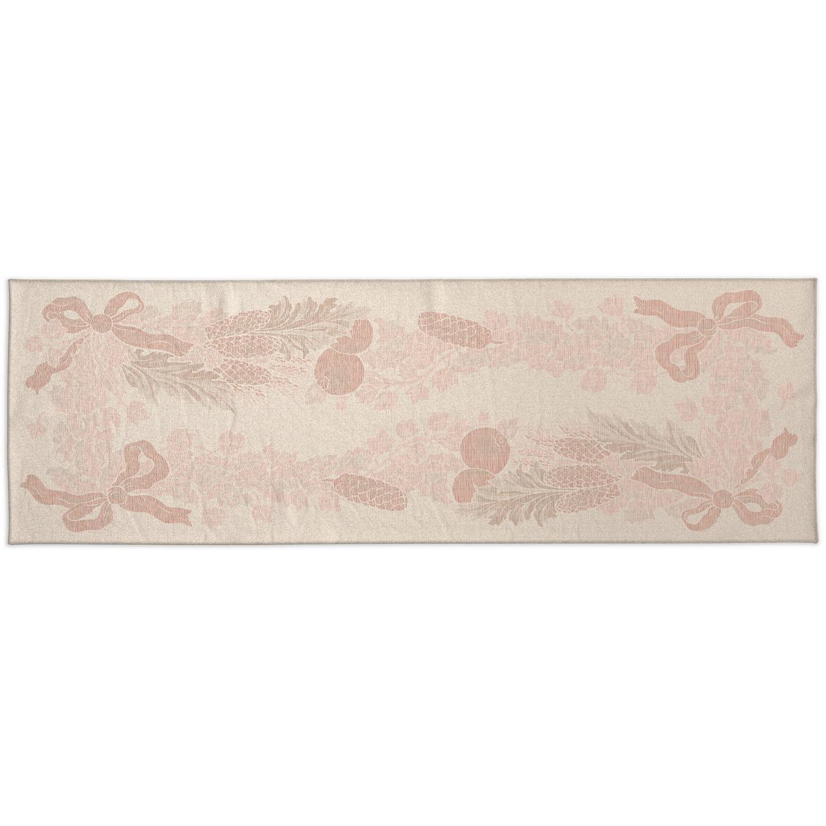 Eine Weihnachtstafel wie im Traum. Die Leinentischwäsche "Girlande" in der Farbe Vanille von Leitner bringt festliche Magie in die Weihnachtszeit. Nahezu Ton in Ton schimmert ein zeitloses Girlanden-Motiv aus verspielten Schleifen und winterlichen Zweigen in zarten Vintage-Farben auf den kostbar glänzenden Jacquard-Stoffen aus reinem Leinen.