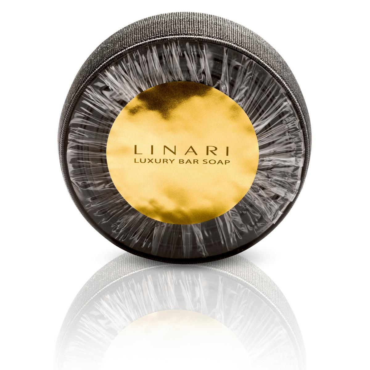 Die Luxusseifen von Linari sind nicht nur Objekte für die Körperpflege, sie werten jedes Bad auf. Denn mit ihrer ausgefallenen Scheibenform, der gerillten Oberfläche und dem schwarzem Stretchband drumherum, zieht jedes Seifenstück alle Blicke auf sich.
