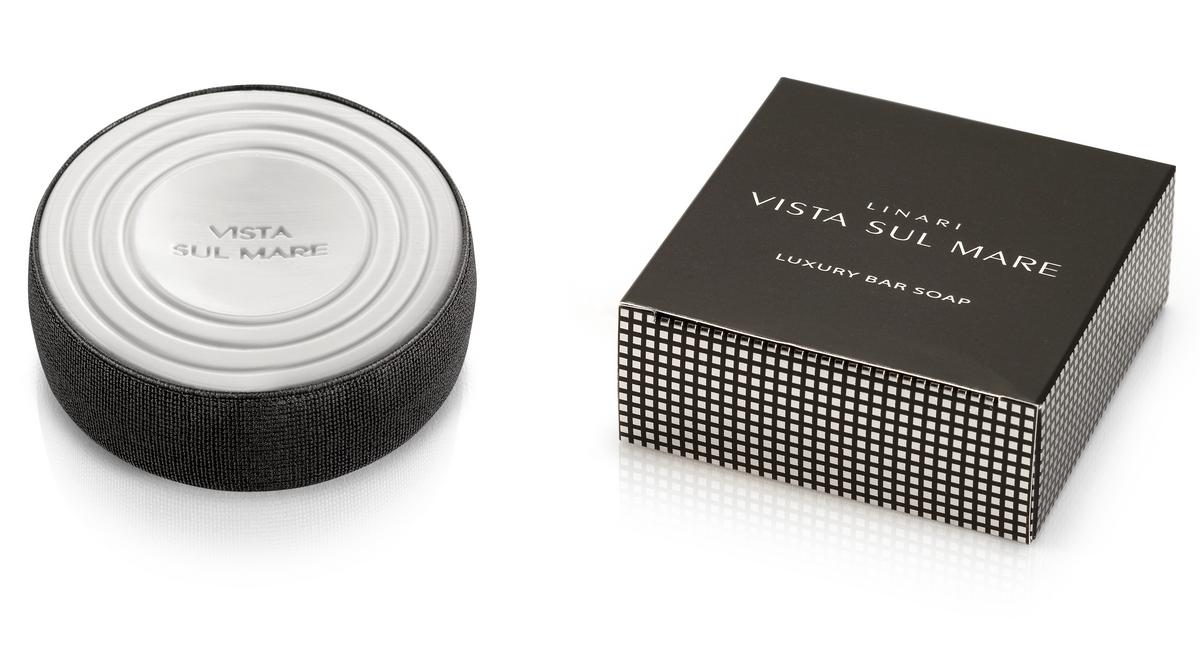 Die Luxusseifen von Linari sind nicht nur Objekte für die Körperpflege, sie werten jedes Bad auf. Denn mit ihrer ausgefallenen Scheibenform, der gerillten Oberfläche und dem schwarzem Stretchband drumherum, zieht jedes Seifenstück alle Blicke auf sich.