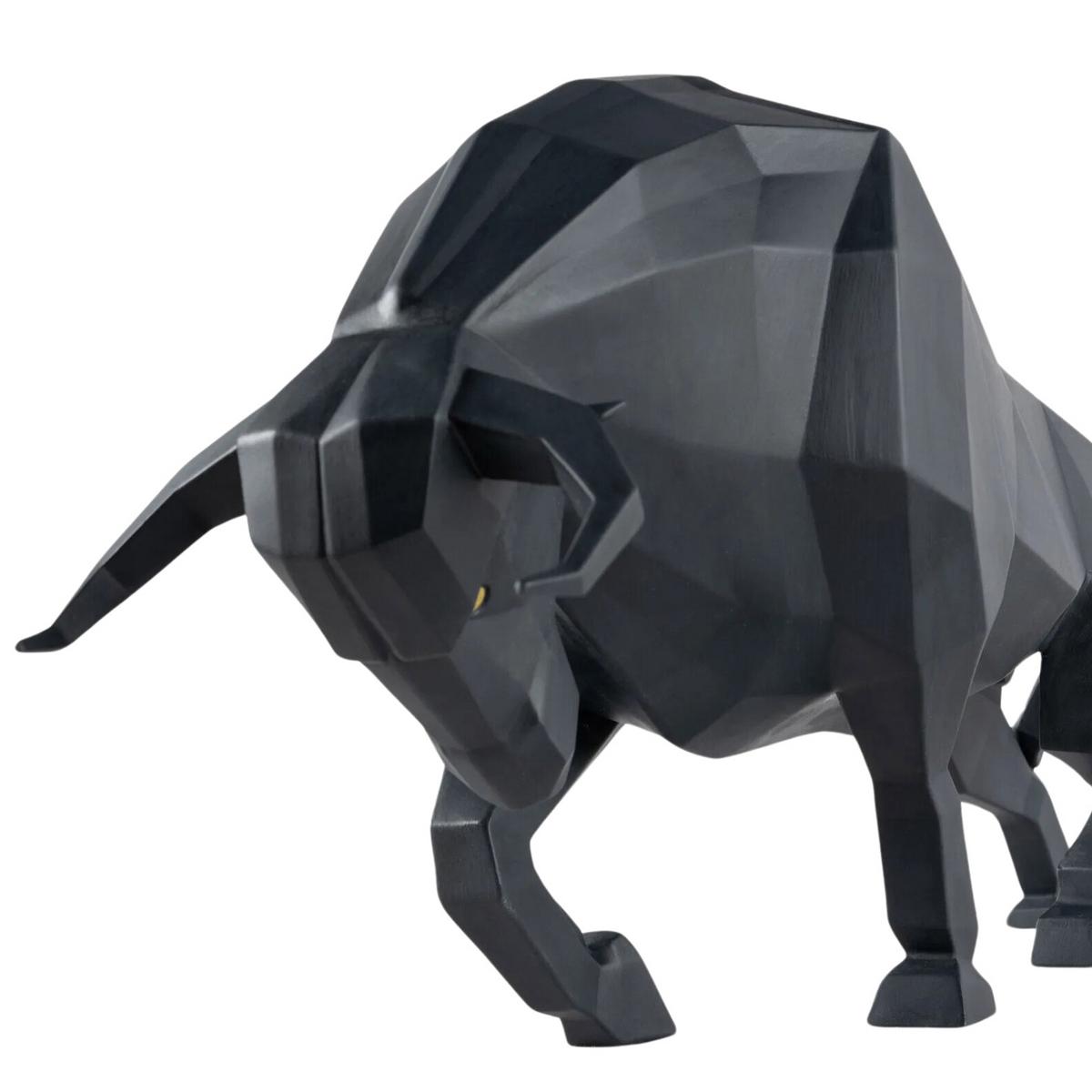 Die Skulptur "Bull" von Lladró stellt einen Stier in seiner typischen Pose dar, während er sich zum Angriff bereit macht. Die Porzellandesigner von Lladró haben sich für "Bull" von der japanischen Kunst des Papierfaltens "Origami" inspirieren lassen. Entstanden ist der formschön facettierte Stier aus mattschwarzem Porzellan, mit einem Hauch von Farbe in den Augen des Tieres.