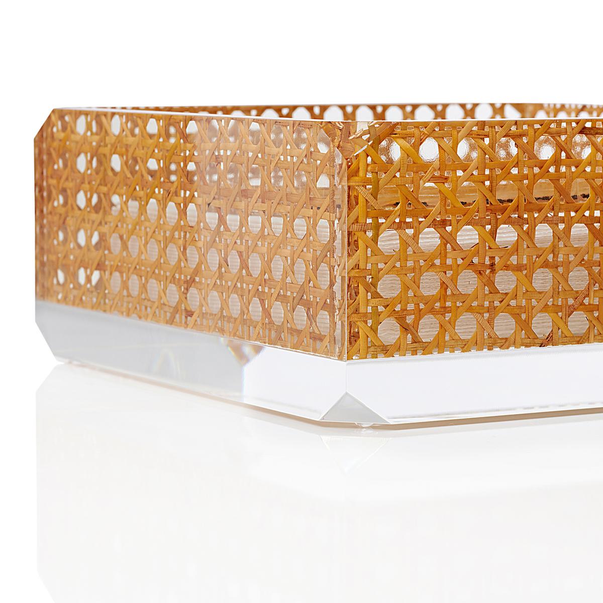 Der Serviettenhalter "Rattan" von Mario Luca Giusti verbindet auf raffinierte Weise klassische Handwerksästhetik mit modernem Design. Das charakteristische Flechtmuster in Rattan-Optik wird kunstvoll zwischen zwei dünnen, klaren Acrylplatten eingefasst. So entsteht ein spannendes Spiel aus Transparenz und Struktur, das dem Objekt eine außergewöhnliche Tiefe und einen besonders edlen Look verleiht.