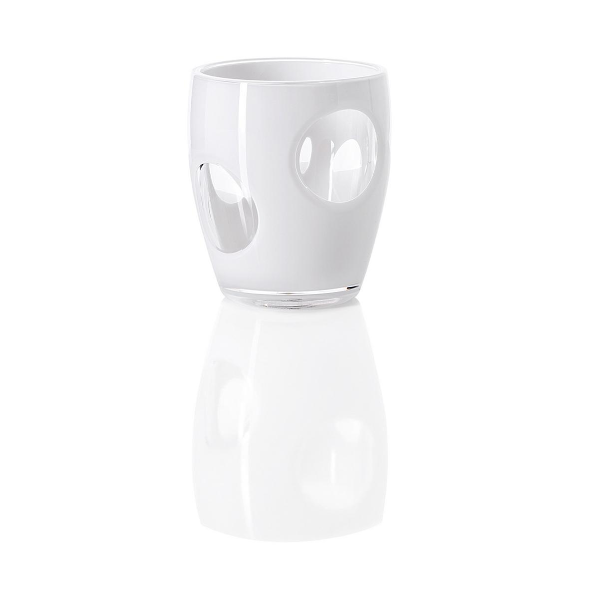 Kult mit Durchblick. Die Acrylbecher "Fisheye" von Mario Luca Giusti sind eine Variation des Dekors der beliebten "Lente" Serie. In die Außenseiten der Acrylbecher sind große Kugeln eingraviert, die einfallendes Licht wie ein Fischauge verzerren. Um den Effekt zu verstärken, sind die farbigen Varianten innen undurchsichtig weiß gefärbt und nur hinter den Kugeln klar.