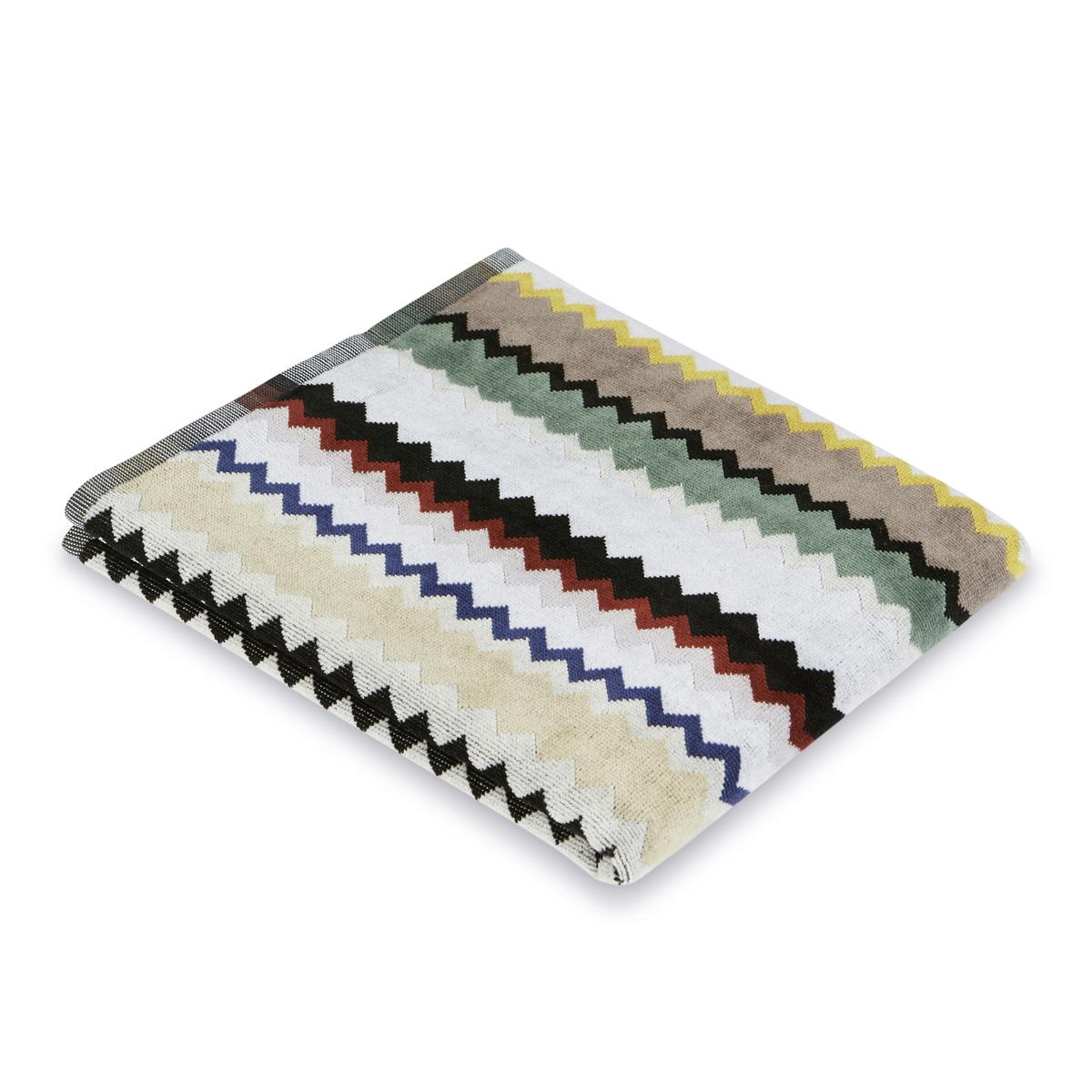 Kleiden Sie Ihr Badezimmer in natürlicher Eleganz mit der Frottierwäsche "Curt" von Missoni Home. Die Kollektion aus Gästetuch, Handtuch und Badetuch besteht aus 100% Baumwolle. Die Tücher haben zwei Seiten, eine flauschig-weiche Velourseite und eine saugfähige Schlingenfrottier-Seite. Ihre stimmige Farbkomposition aus Schwarz, Weiß und gedeckten Farben verleiht dem berühmten Missoni Chevron-Muster einen hellen, edlen und natürlichen Charakter.