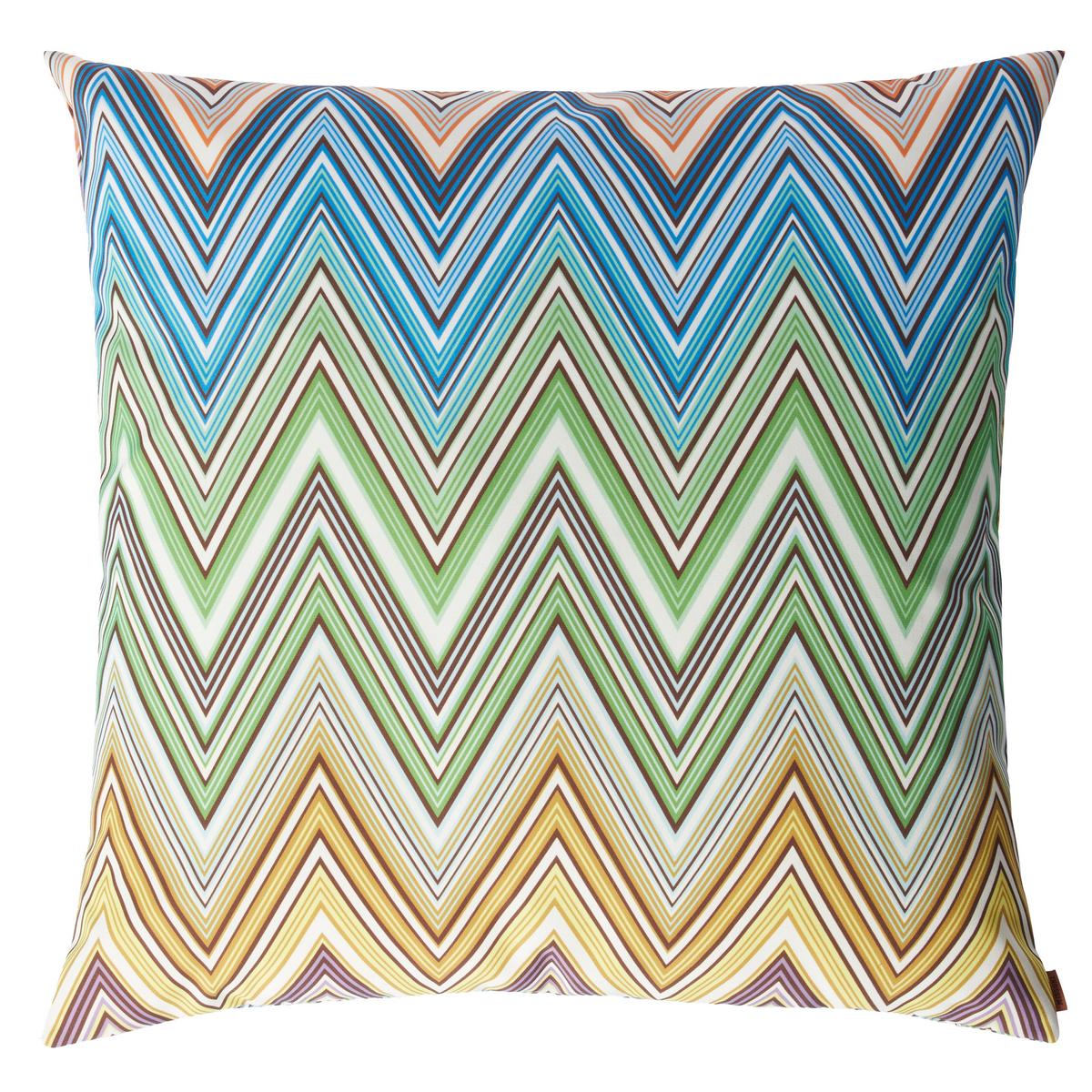 Die Kissen "Kew Outdoor" in der Farbe 165 von Missoni Home bestehen aus einem wasserabweisenden Stoff aus 100 % Polyester und sind daher bestens für die Terrasse oder den Balkon geeignet. Die Füllung ist aus unempfindlichen Polyurethan-Schaumstoff. Die dekorativen Kissen "Kew Outdoor" sind eine wunderbare Ergänzung, um Ihren Balkon oder Terrasse farblich in Szene zu setzen. Allerdings sollten Sie das Missoni Kissen für Draußen nicht dauerhaft im Regen liegen lassen. Permanente direkte Sonneneinstrahlung kann dazu führen, dass die Farben verblassen.