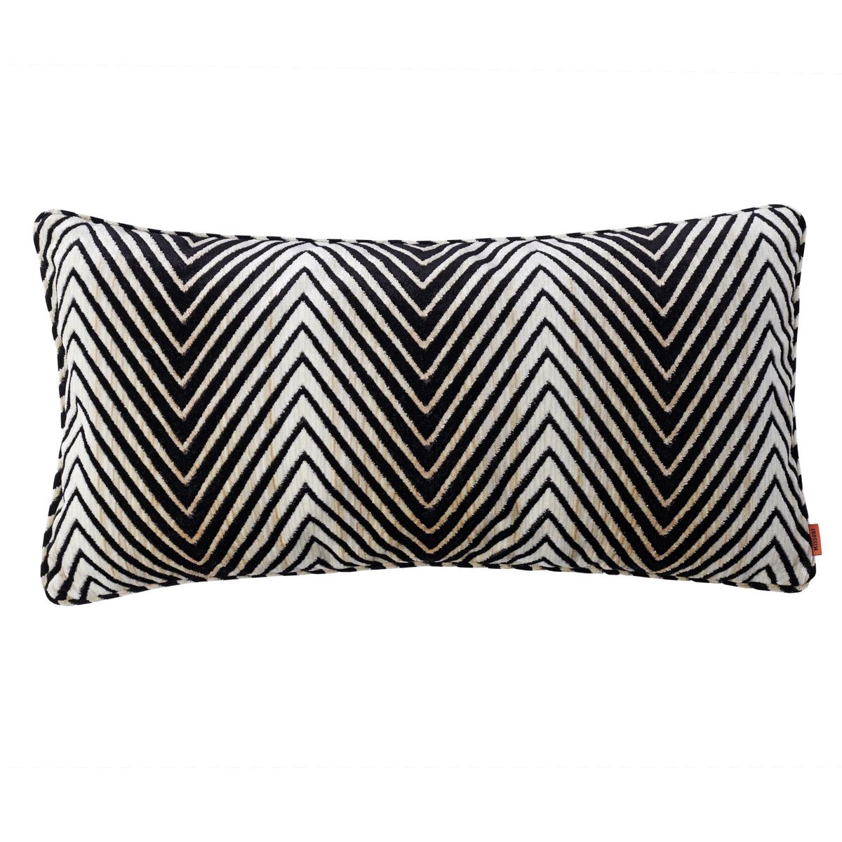 Die Kissen "Ziggy" in Schwarz von Missoni Home machen das ikonische Missoni Zickzackmuster fühlbar. Die hellen und dunklen Streifen unterscheiden sich in ihrer Textur und geben dem Chevron-Design damit eine neue Dimension. Cremefarbene Längsstreifen auf den weißen Flächen wirken wie Schatten und verleihen dem Dessin die Missoni-typische Komplexität.