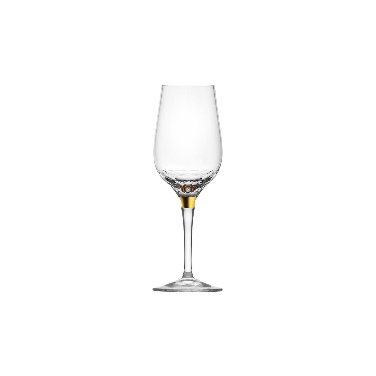 Ein Juwel für die gedeckte Tafel. Genießen Sie unvergessliche Abende mit den Gläsern "Jewel Gold" aus der tschechischen Glasmanufaktur Moser. Ein Ring aus 24-Karat Gold verbindet die extragroßen Kelche der Gläser mit ihren grazilen Stielen. In den symmetrischen Facetten auf der Unterseite der Kelche spiegelt sich das Gold in alle Richtungen und erfüllt die Gläser mit seinem warmen Glanz. Trotz ihrer überdurchschnittlichen Größe sind die Gläser der Kollektion dünnwandig und grazil. Imposant und elegant – ein zeitlos modernes Meisterwerk in der Tradition böhmischen Kristallglases.