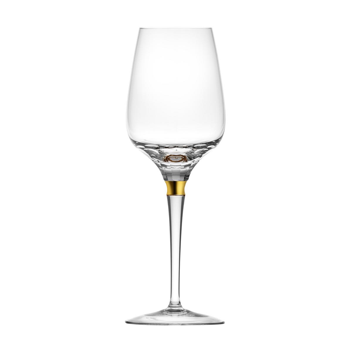 Ein Juwel für die gedeckte Tafel. Genießen Sie unvergessliche Abende mit den Gläsern "Jewel Gold" aus der tschechischen Glasmanufaktur Moser. Ein Ring aus 24-Karat Gold verbindet die extragroßen Kelche der Gläser mit ihren grazilen Stielen. In den symmetrischen Facetten auf der Unterseite der Kelche spiegelt sich das Gold in alle Richtungen und erfüllt die Gläser mit seinem warmen Glanz. Trotz ihrer überdurchschnittlichen Größe sind die Gläser der Kollektion dünnwandig und grazil. Imposant und elegant – ein zeitlos modernes Meisterwerk in der Tradition böhmischen Kristallglases.