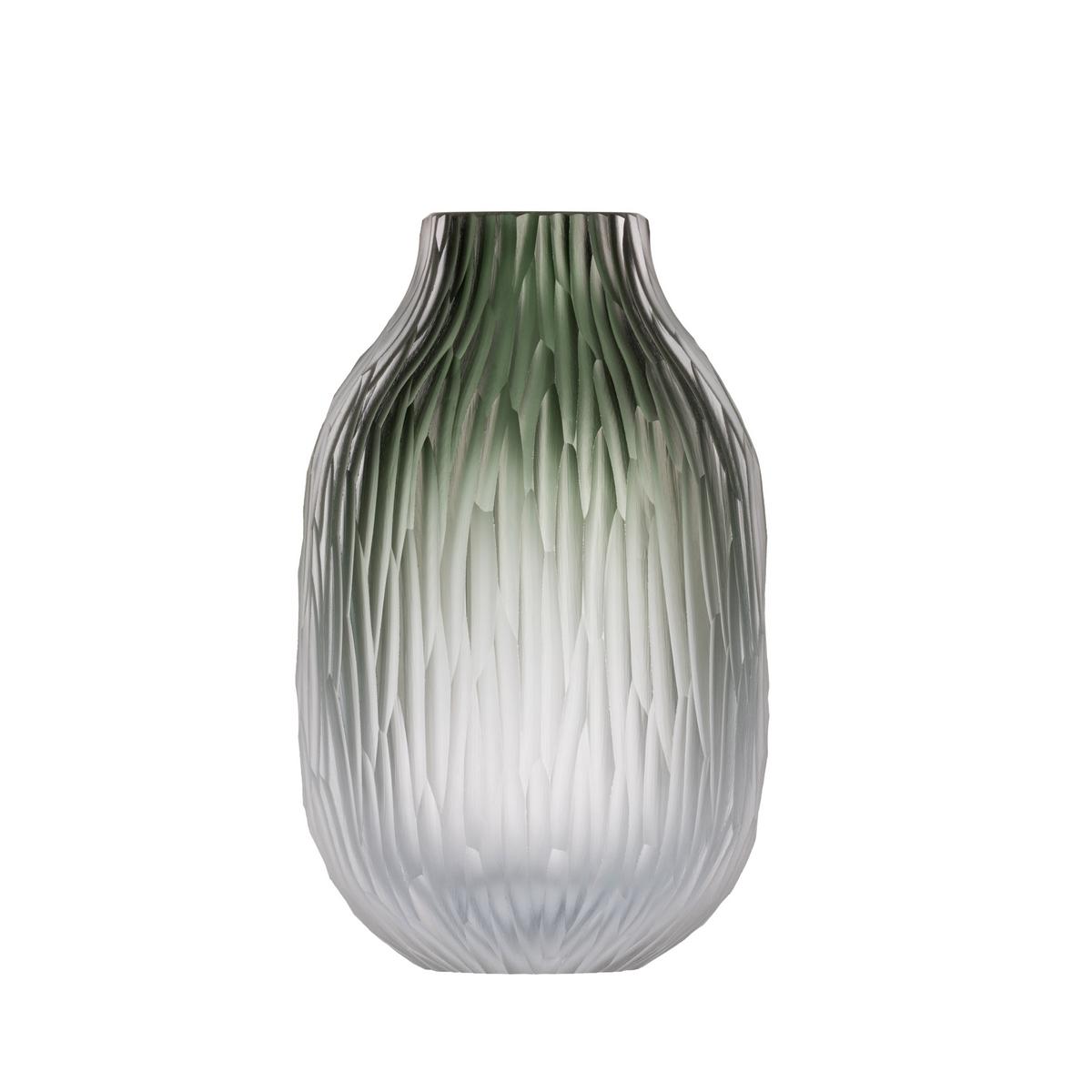 Prämiertes Design im Einklang mit der Natur. Die Vasen "Pinea" von Moser reflektieren harmonisch die Farben und Texturen der noblen Pinie. Das rauchige Grün der Nadeln erfüllt das mundgeblasene böhmische Kristallglas wie ein feiner Farbnebel. Der von Hand gesetzte Schliff ist den organischen Texturen der Borke nachempfunden und fällt auf jedem Exemplar etwas anders aus. Ein mattes Satin-Finish verführt zum Berühren und Erforschen der faszinierenden Oberflächen. Die breite Vasenform eignet sich besonders für rundliche Bouquets und die schlanke Form für schmale, hohe Gestecke oder große Einzelblüten.