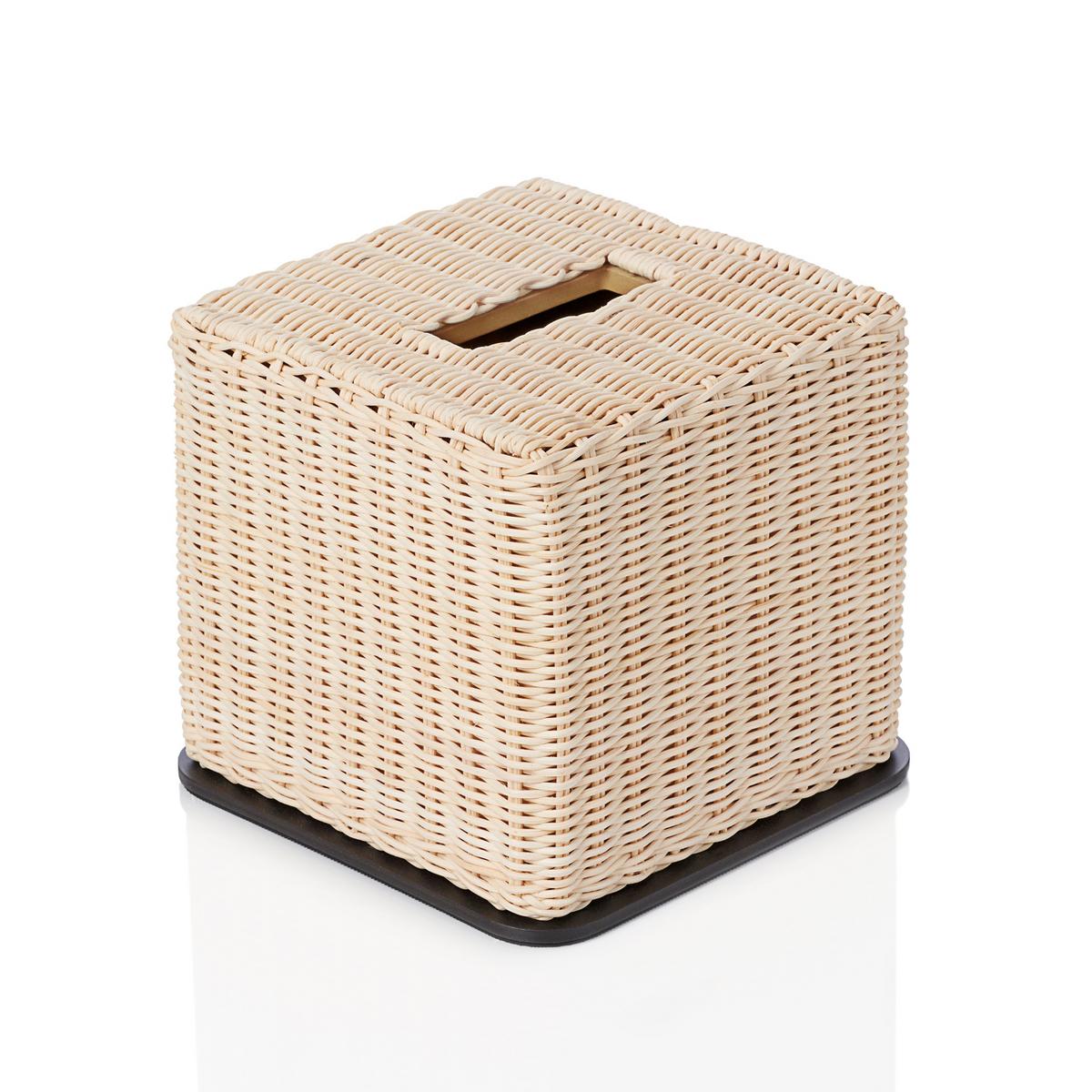 Handgeflochtene Naturakzente. Die Kleenex-Hüllen "Amiens" von Pigment transformieren handelsübliche Papiertuchboxen in außergewöhnliche Deko-Objekte. Die Hüllen bestehen aus handgewebtem, feinem Rattan über einer stabilen Holzkonstruktion. Ein schwerer, bronzefarbener Messingrahmen sorgt für einen sicheren Stand, während ein weicher Boden mit Klettverschluss die Kleenex-Boxen an Ort und Stelle hält. Mit ihrem schlicht-eleganten Flechtmuster sind die Hüllen charmante und moderne Einrichtungsobjekte im naturbetonten Stil.