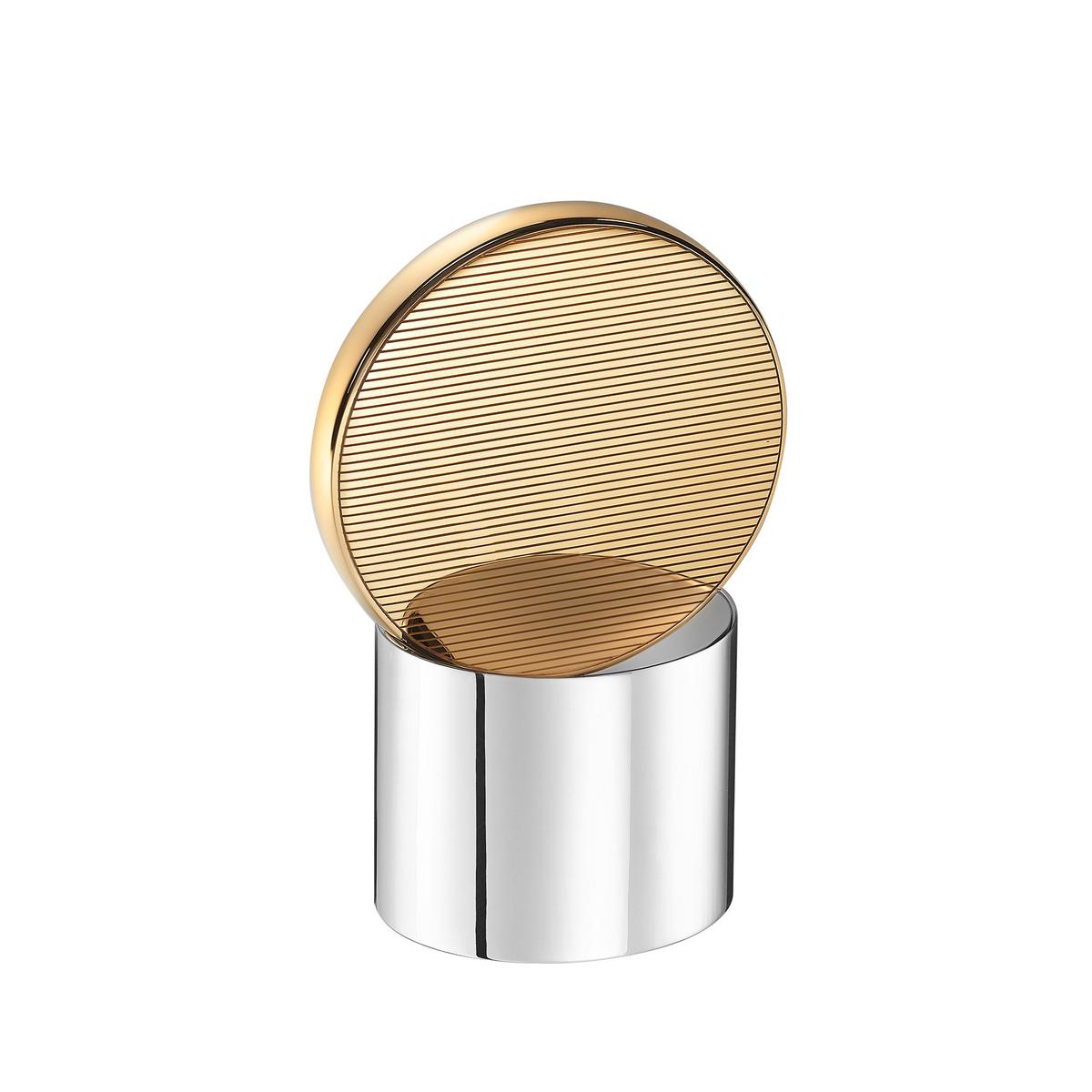 Zum Befüllen nehmen Sie die Scheiben von den Behältern ab und geben die Gewürze durch die Öffnung in die beschichtete Kammer. Die konkave Form der Behälter fungiert dabei als Trichter. Ansprechend, funktional, genial – ein außergewöhnliches Tischaccessoire aus der Silberschmiede Puiforcat.