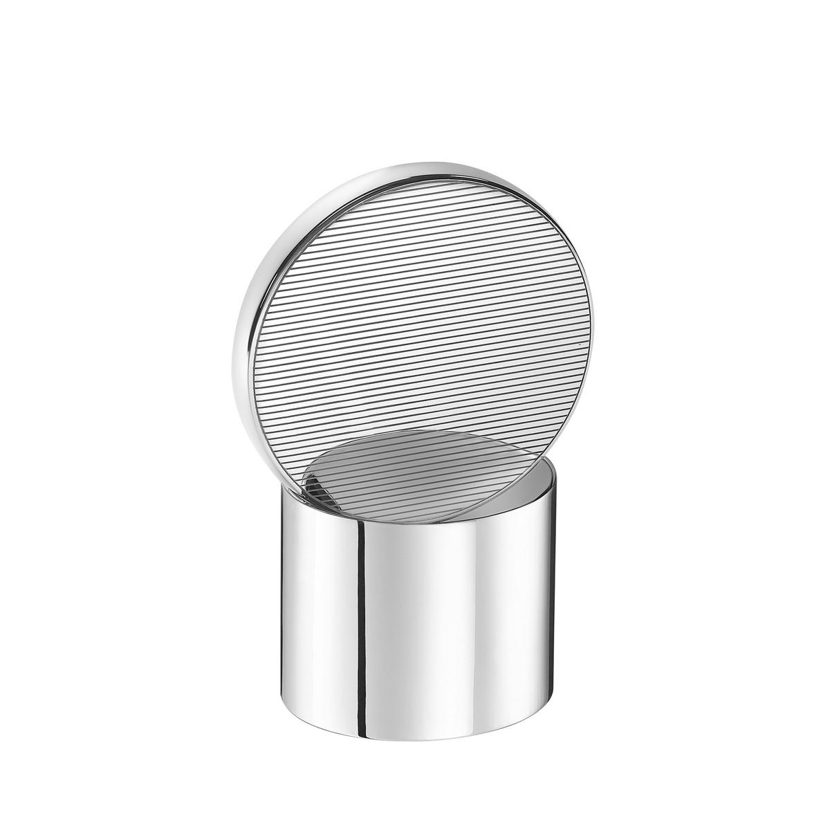 Zum Befüllen nehmen Sie die Scheiben von den Behältern ab und geben die Gewürze durch die Öffnung in die beschichtete Kammer. Die konkave Form der Behälter fungiert dabei als Trichter. Ansprechend, funktional, genial – ein außergewöhnliches Tischaccessoire aus der Silberschmiede Puiforcat.