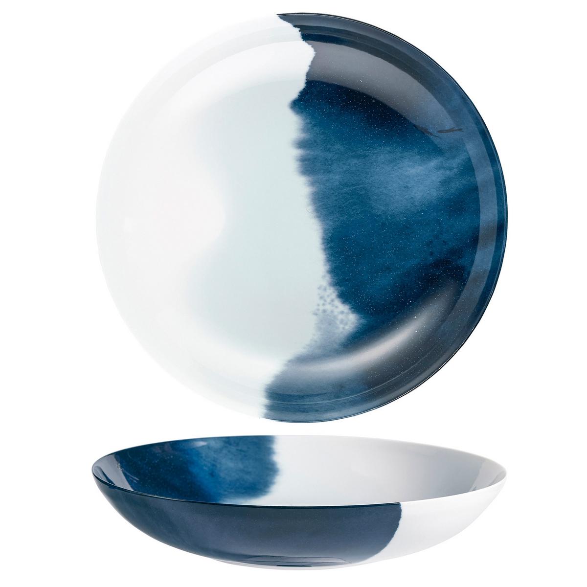 Entdecken Sie die tiefsten Abgründe des Meeres mit dem Tafelservice "Abysses" von Raynaud. Indigo-blaue Dekore aus dynamischen Pinselstrichen transformieren das strahlend weiße Limoges-Porzellan in unergründliche Unterwasserwelten. Mal dynamisch und dunkel wie reißende Strömungen, mal sanft und hell wie nebelverhangene Küstenlandschaften, lassen die beidseitigen Designs endlose maritime Assoziationen zu.