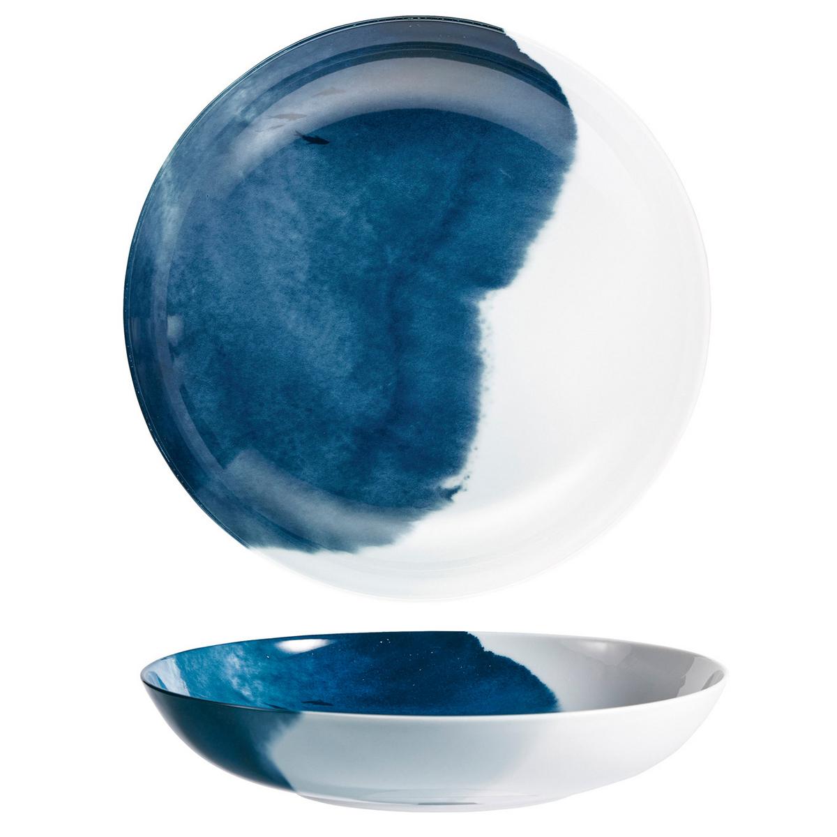 Entdecken Sie die tiefsten Abgründe des Meeres mit dem Tafelservice "Abysses" von Raynaud. Indigo-blaue Dekore aus dynamischen Pinselstrichen transformieren das strahlend weiße Limoges-Porzellan in unergründliche Unterwasserwelten. Mal dynamisch und dunkel wie reißende Strömungen, mal sanft und hell wie nebelverhangene Küstenlandschaften, lassen die beidseitigen Designs endlose maritime Assoziationen zu.