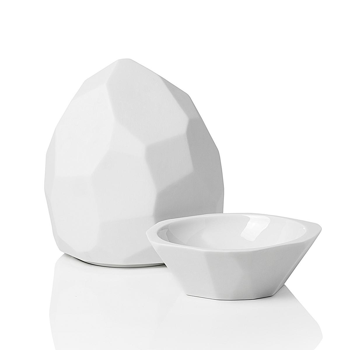 Kulinarische Schmucksteine: Die weißen Porzellan-Felsen "Pépites" von Raynaud sind stapelbare Schälchen und Tellerchen mit innovativem Formfaktor. Die Felsenteile sind nur innen glänzend glasiert. Außen besitzen sie eine seidig matte Textur.