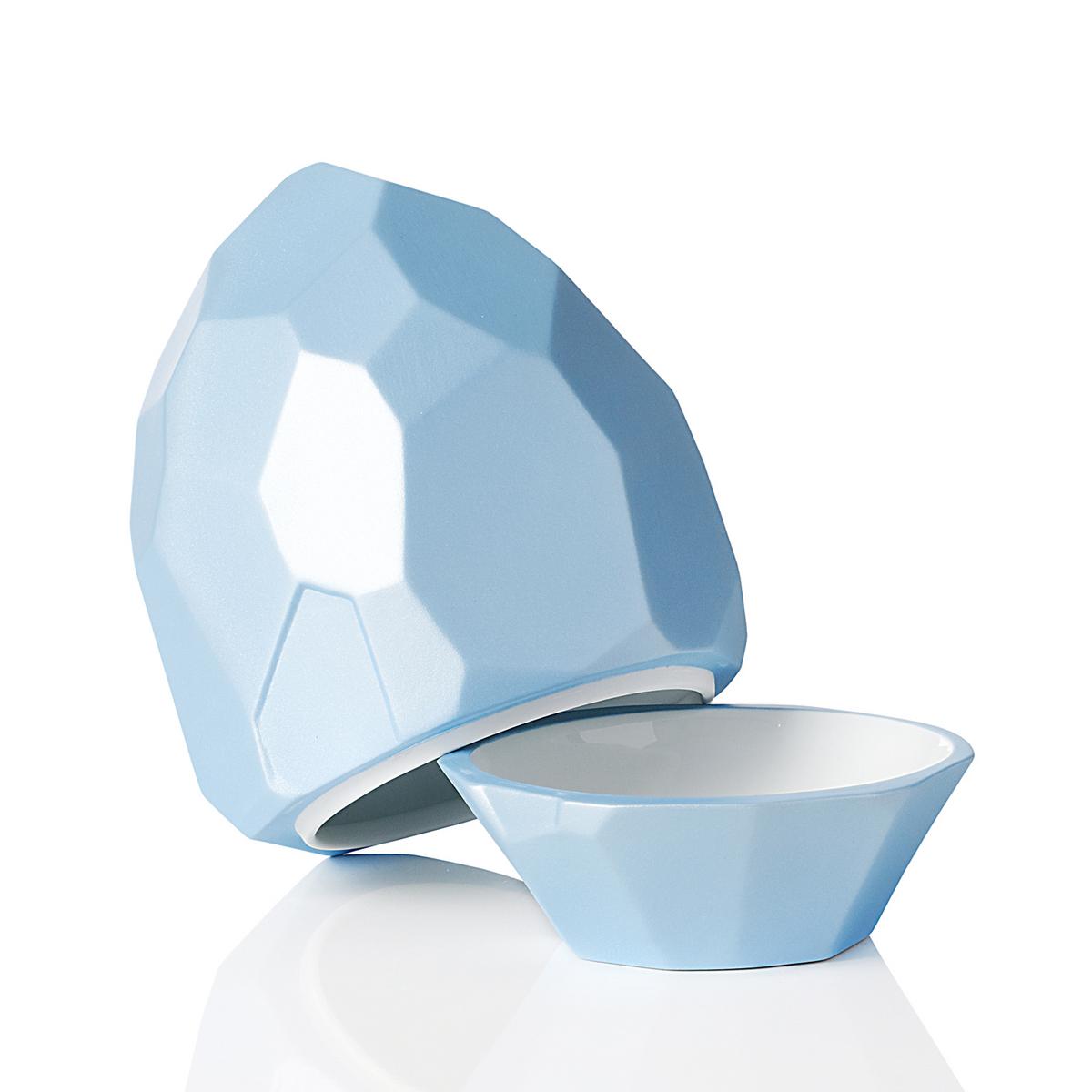Kulinarische Schmucksteine: Die Felsen "Pépites Irisées" von Raynaud sind ein tiefer Teller und passende Cloche in einem. Die Felsenteile sind nur innen glänzend glasiert. Außen besitzen sie eine seidig matte Textur, welche in irisierenden Farben schimmert. Um die Kreativität von Chef- und Hobbyköchen zu unterstützen, hat Mariela Schwarz Montiel die Kollektion "Pépites" entworfen.